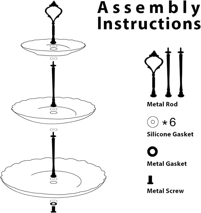 • Multiple usage scenarios: Elegant three-tier cake stand is perfect for putting on dinner feast, wedding, holiday party, baby shower, to provide delicious desserts for your friends or family.Create a sense of balance and romance.