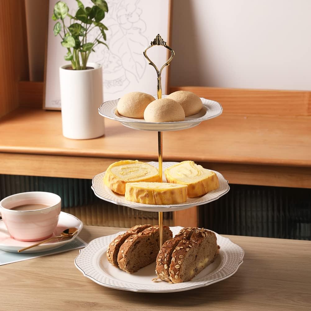 • Multifunctional Cake Stands: On this 3- Layer cake stand you can place sandwiches, scones, croissants, fruit, cupcakes or anything you want to show on the table.