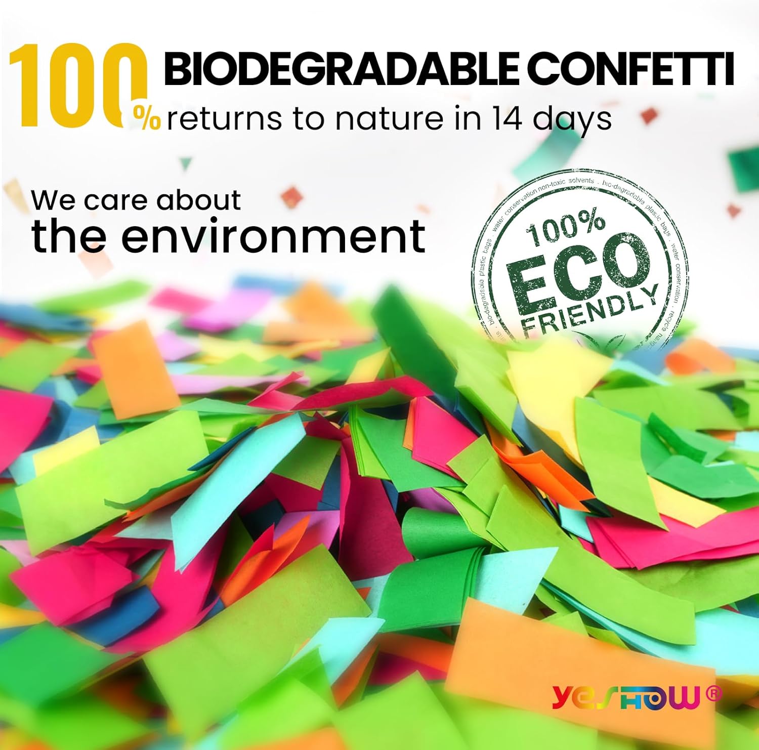 • 🎉【ECO-FRIENDLY BIODEGRADABLE CONFETTI】 Our confetti cannon is filled with 100% biodegradable confetti that breaks down naturally and is completely non-toxic. Not only is it eco-friendly, but it’s also flame-resistant, stopping immediately if exposed to fire. Plus, cleanup is a breeze—perfect for hassle-free celebrations
