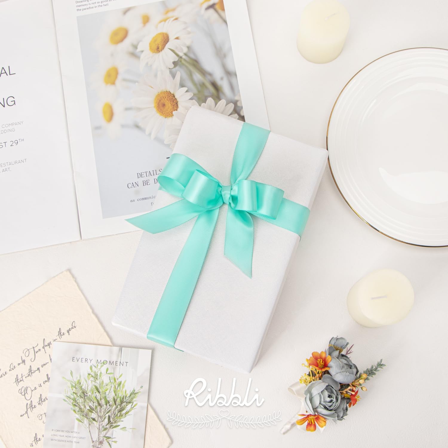 Ribbli Aqua Blue Double Faced Satin Ribbon,1” x Continuous 25 Yards,Use for Bows Bouquet,Gift Wrapping,Wedding Decoration