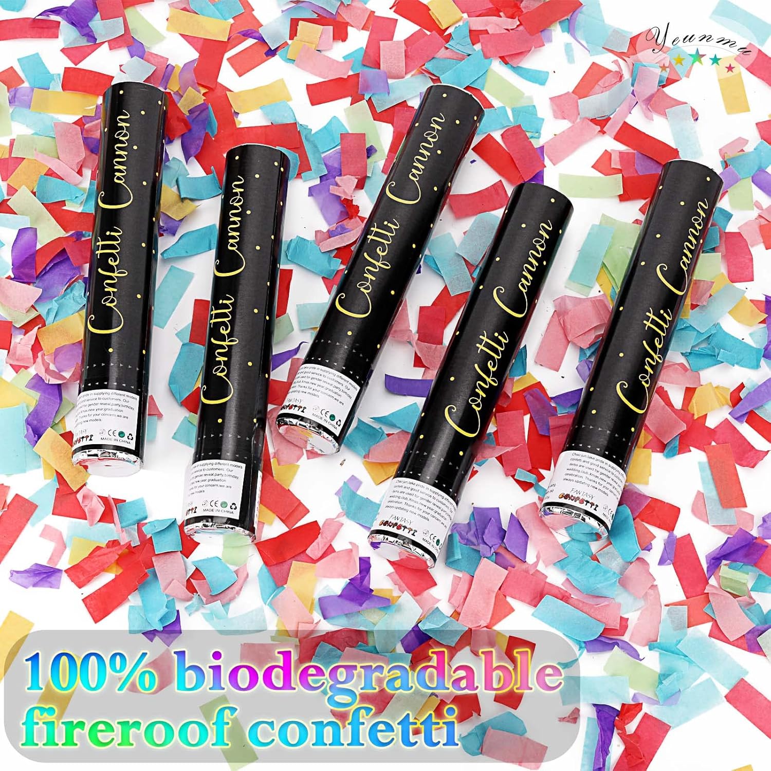 • Biodegradable Confetti Poppers: The Yeunmu party poppers fillings are colorful degradable paper scraps, requiring no clean-up after use. The confetti will biodegrade without any negative impact on the environment.