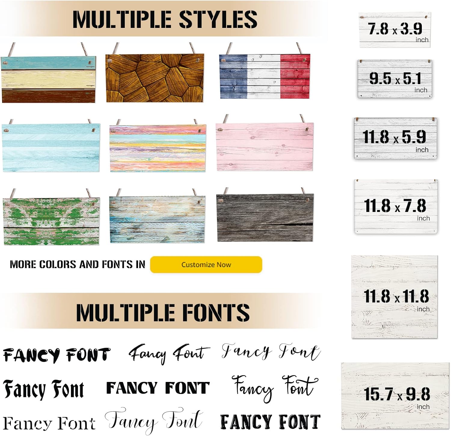 • 🟒Multiple Sizes and Backgrounds - We provide up to 100 different wood plank background colors, 20 different fonts and 50 font colors (in "Customize Now"), you can choose the one you like to design