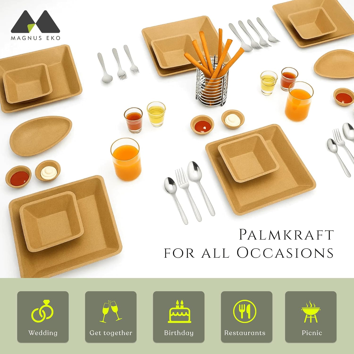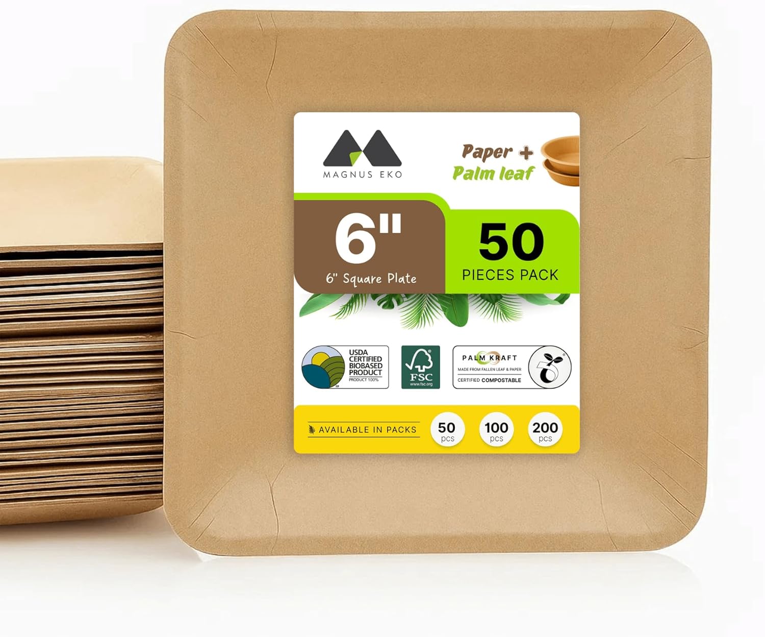 magnus EKO Kraftware | 6 Inch Square Plates 50 Pcs | Disposable Plates | Like Bamboo Plates For Appetizer & Desert | Eco Friendly, Compostable & Biodegradable plates for Catering, Weddings, Parties