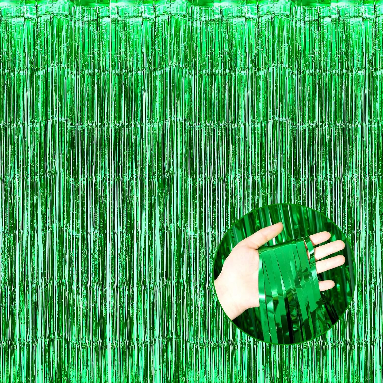 4 Pack Green Foil Fringe Curtain Backdrop, 3.28Ft x 8.2Ft Metallic Tinsel Foil Fringe Streamer Curtains for Photo Booth Props Decor Party Supplies