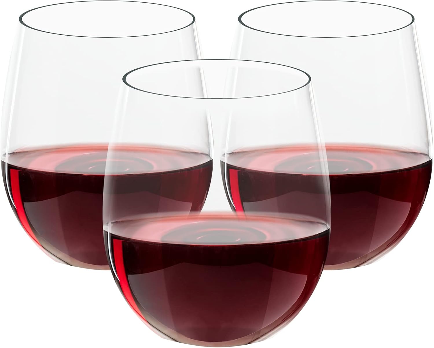 • These clear plastic wine cups are safe for you and your guests; Stemless plastic wine glasses are made of food-grade plastic; Thickened plastic material makes the wine glass more sturdy and not easy to warp
