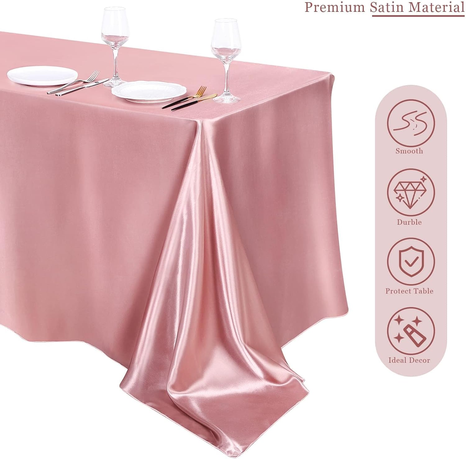 TURSTIN 4 Packs Rose Gold Satin Tablecloth 102 x 58 Inch Overlay Satin Table Cover Rectangle Bright Silk Tablecloth Smooth Fabric Table Decoration for Wedding Banquet Party Events