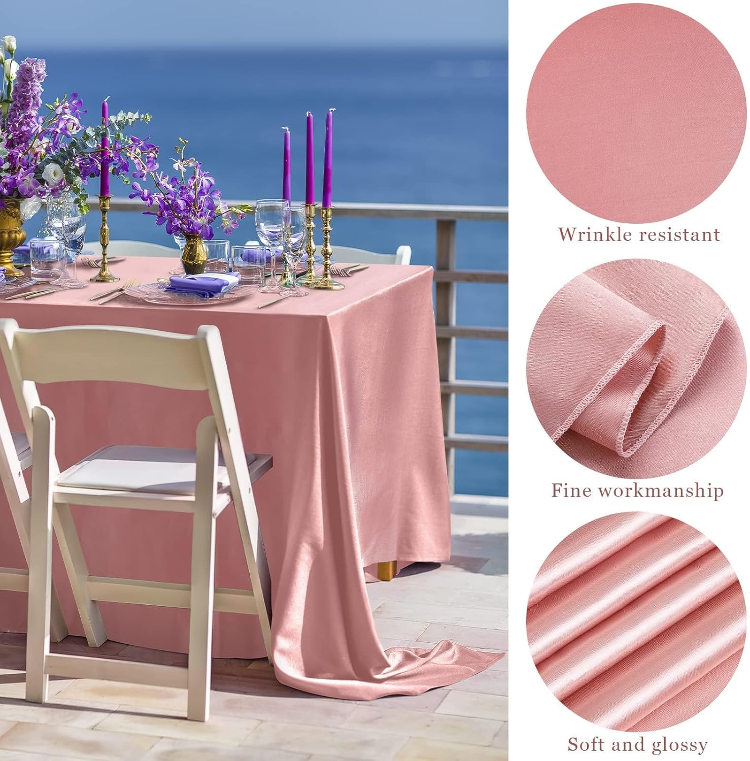 • Premium material: the bright silk tablecloth is made of high-quality satin material, comfortable and soft to touch, delicate and smooth fabric, with good brightness and drooping feeling, not easy to deform; the overlay satin tablecloth is durable and not easy to fade, protect your table and can be used for a long time