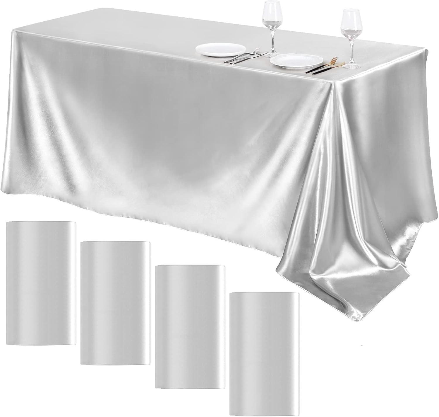 • Sufficient quantity: you will get 4 packs of silver satin tablecloths, exquisite and elegant design, simple and stylish, which can add more design to your room, enhancing the decoration level of your house, the enough quantity can well meet your using needs; warm tip: due to manufacturing reasons, there might be a slight color difference, please understand
