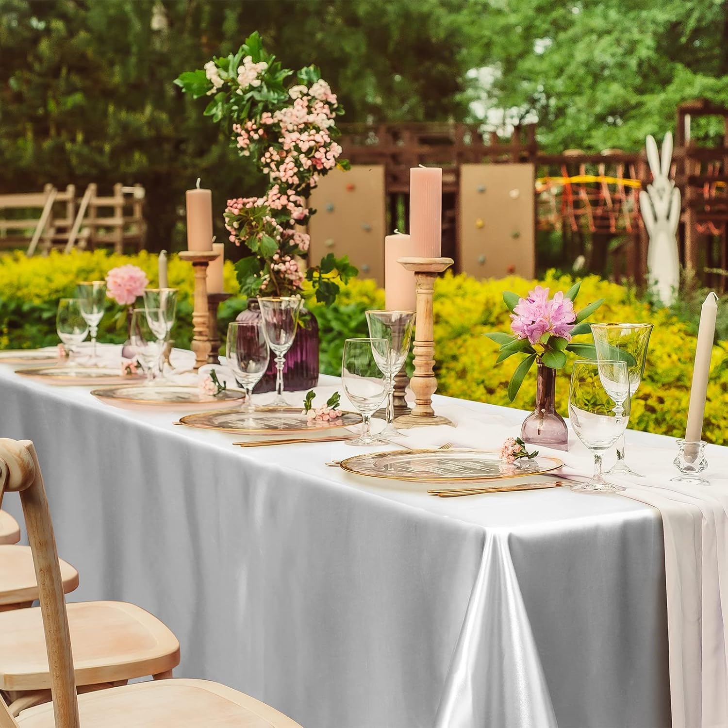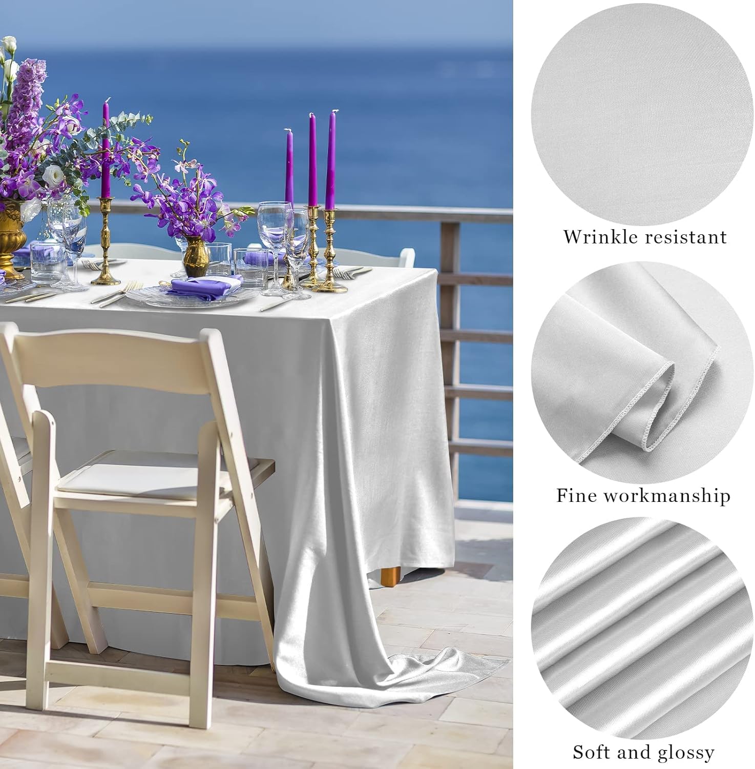 • Premium material: the bright silk tablecloth is made of high-quality satin material, comfortable and soft to touch, delicate and smooth fabric, with good brightness and drooping feeling, not easy to deform; the overlay satin tablecloth is durable and not easy to fade, protect your table and can be used for a long time