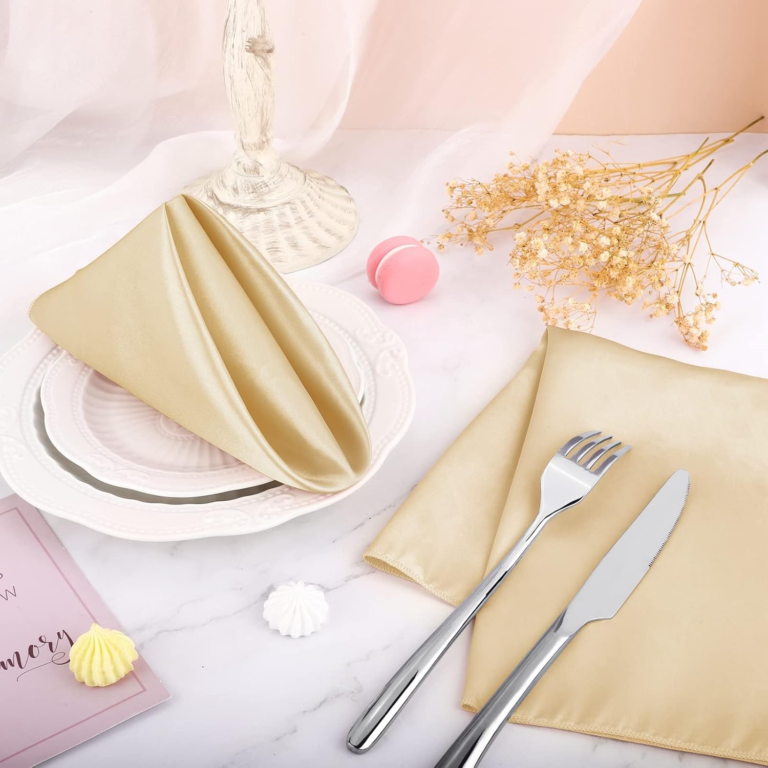• Package includes: you will receive 16 pieces of satin napkins in champagne, basic pure colors are suitable for all kinds of occasions, with elegant and simple design and almost not outdated, which can improve your home decoration level and add more designs to your room(tip: due to the reason of the product material there will be a certain color difference)