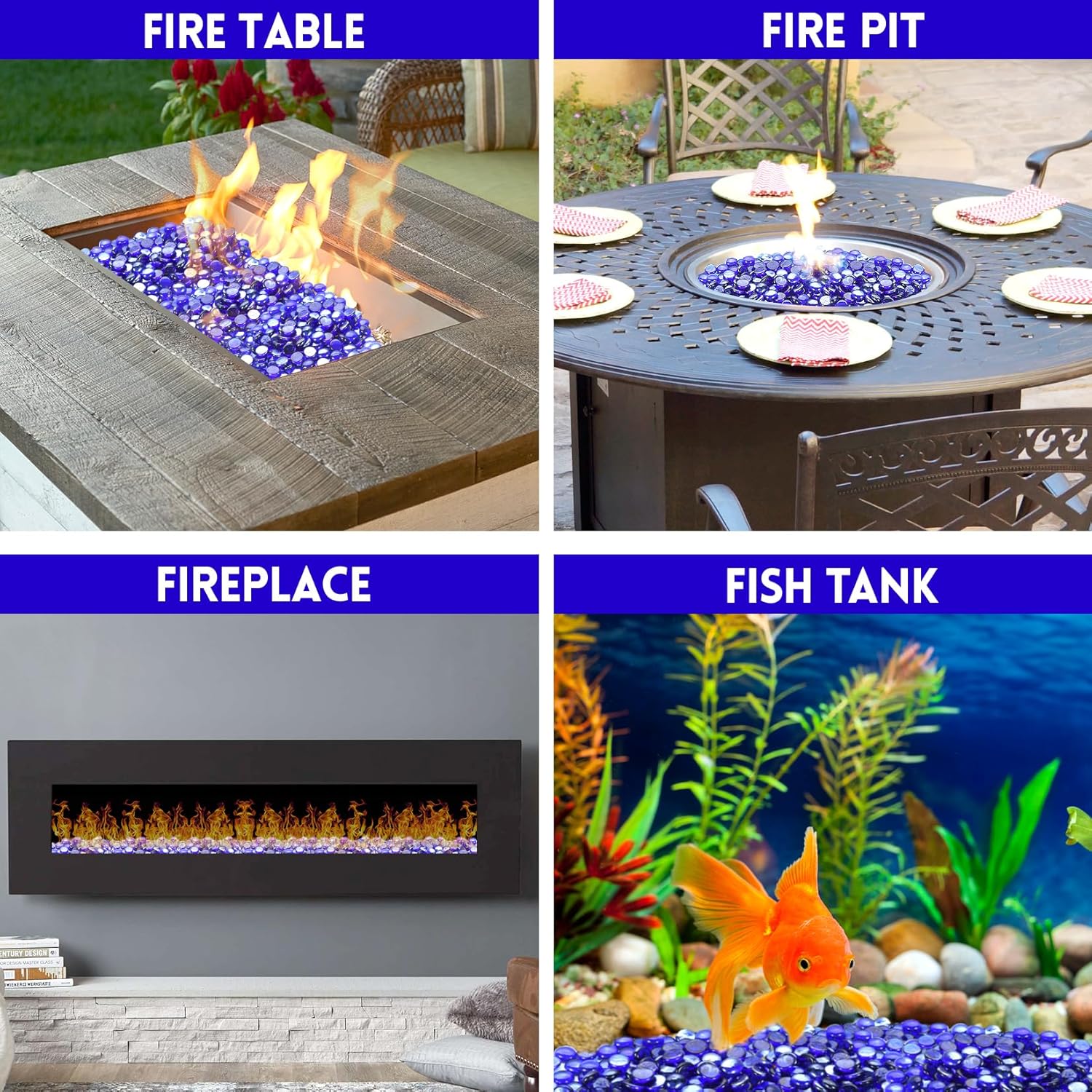 Fire Pit Glass, Cobalt Blue Firepit Rocks for Propane Firepit, Fireplace and Outdoor Decorative, 3/4 High Luster 10LB Round Fire Glass Beads