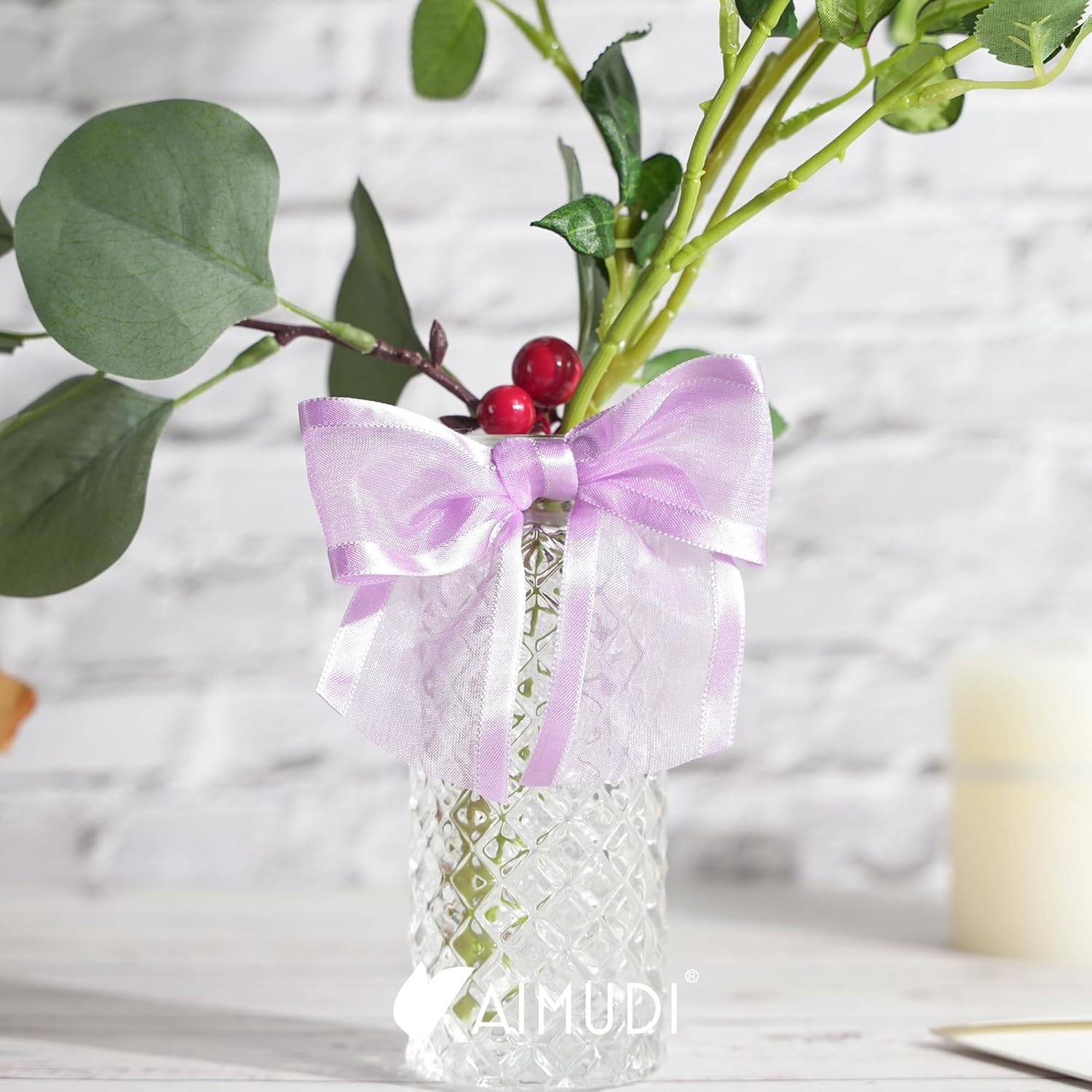• PRETIED RIBBON BOWS- Decorative bows is made of 1-1/2'' purple organza satin edge ribbon with romantic transparency and glossy lustre, easily adding a elegant final touch to your party favor, cake pop bags, gift basket