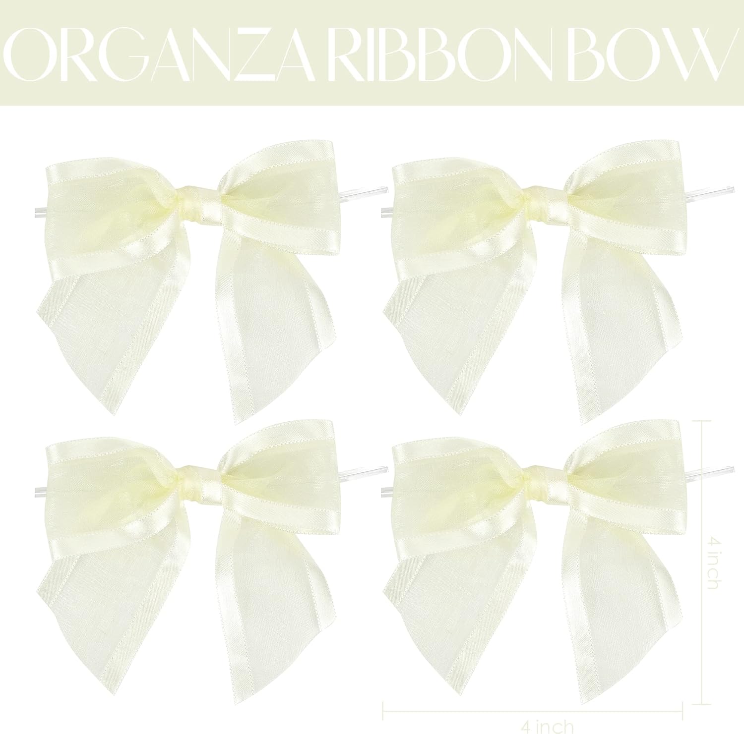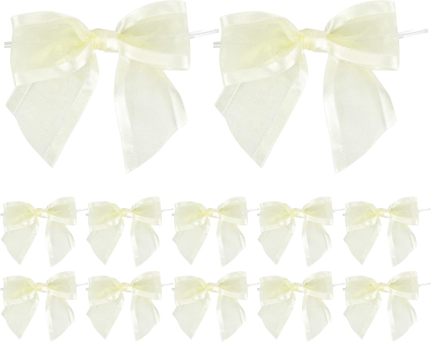AIMUDI Ivory Bows for Weddings 4" Organza Bows Premade Twist Ties Bows for Gift Wrapping Crafts Treat Bags Baskets Cake Pop Baby Shower Birthday Decor - 12 Counts