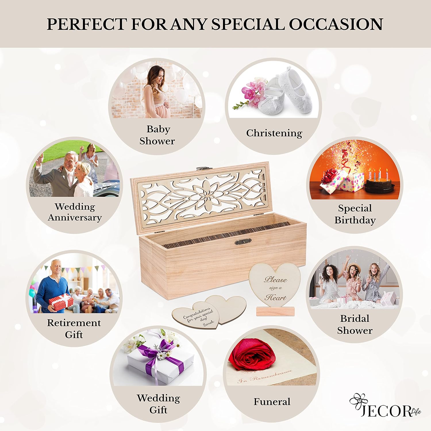 • ๐Ÿ’— Custimomize Your Guest Book Set - You get to choose how you want to display your wedding books for guests to sign. With interchangeable sign hearts, this makes it possible to persionalize your box however you would like to match your guest book wedding reception or celebration of life decorations.