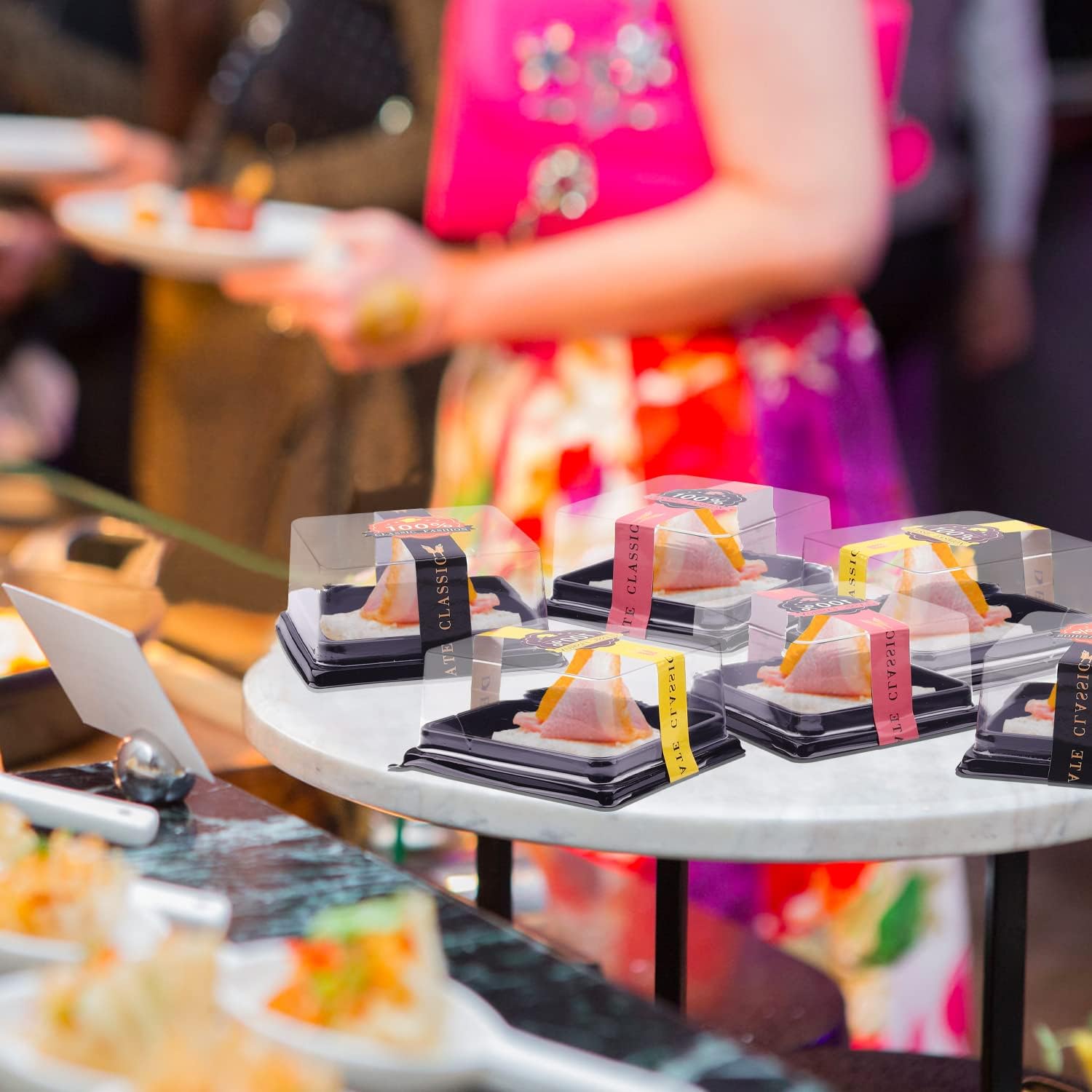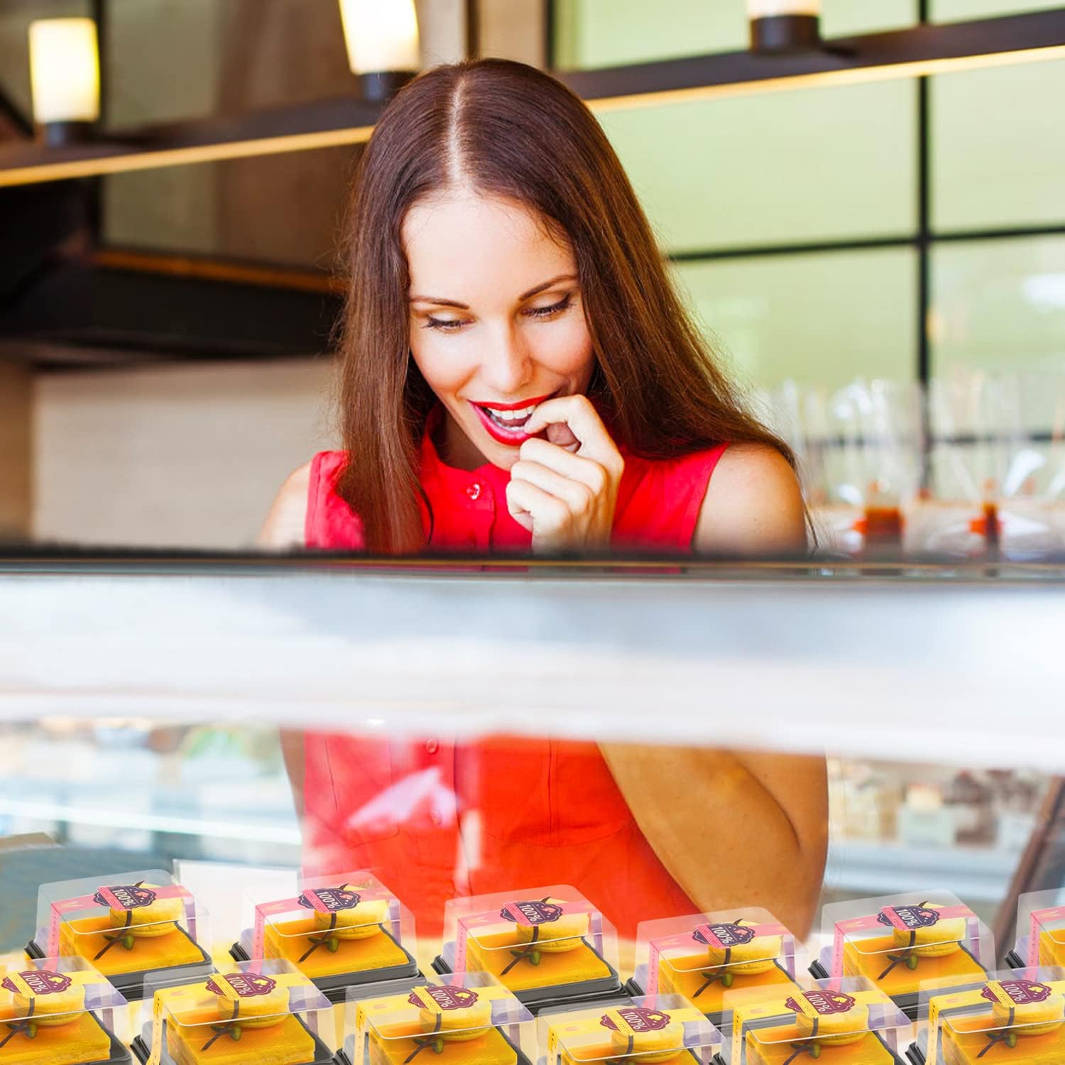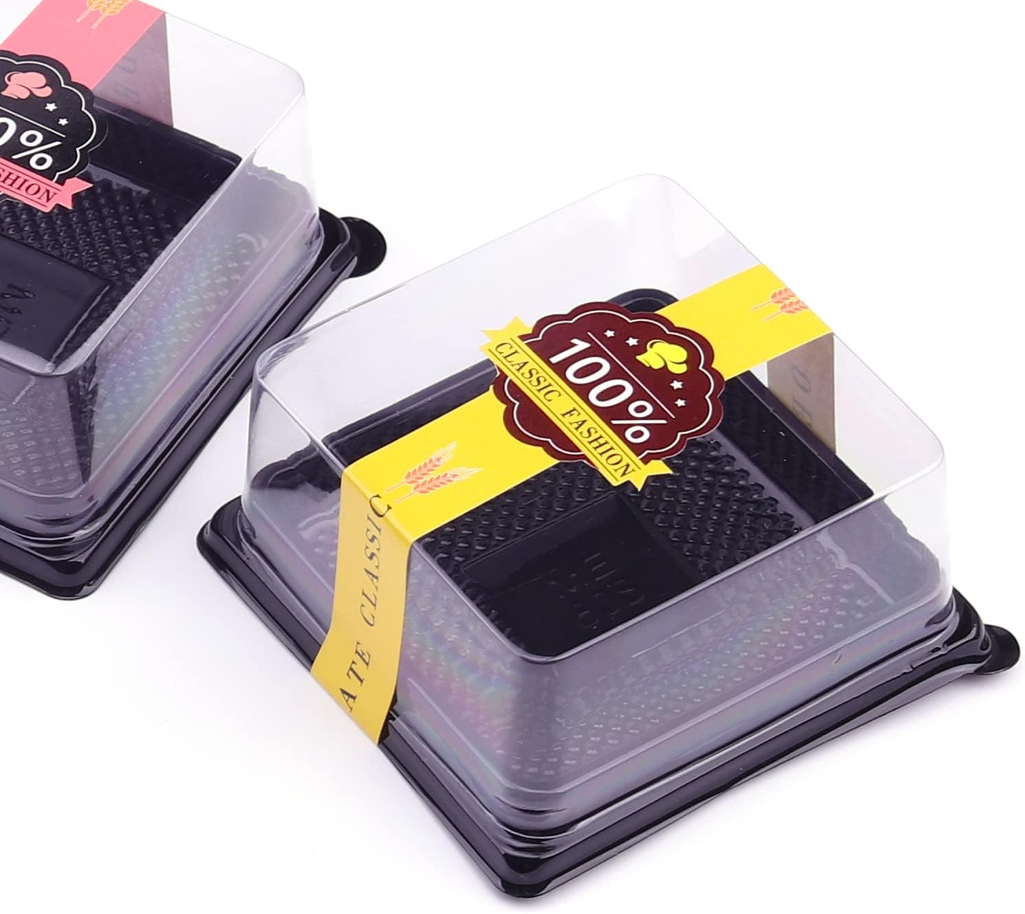 • Great Value Mini Cupcake Containers- You will receive 50 sets clear plastic mini cake boxes muffin holders and 50 pcs long sealing stickers, you can tape the stickers onto the container for securely closure, it also add a decorative touch to the mini cake box