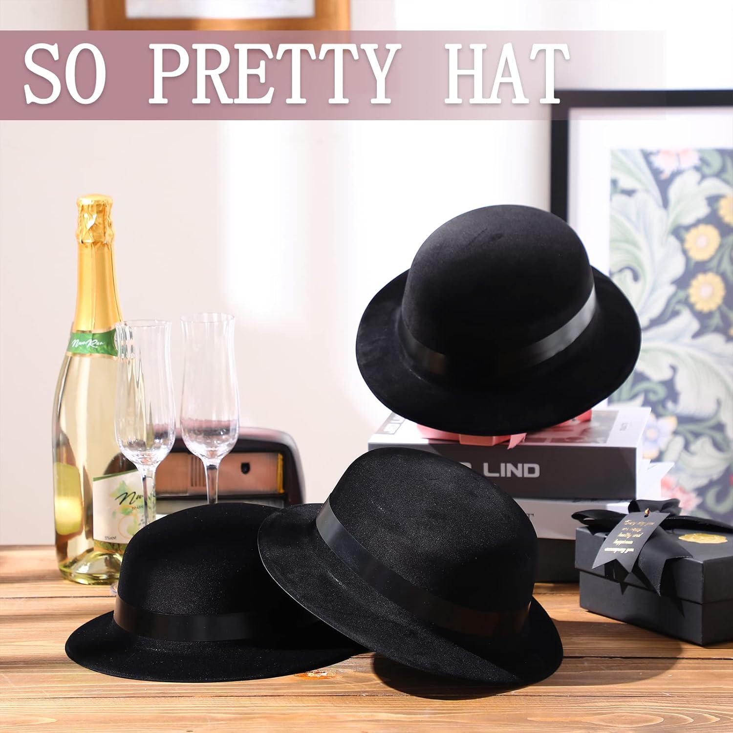 • Friends Sharing Package: you will receive 12 pieces of black derby hats in the package, enough quantity can satisfy your daily or party wearing needs, and allow you to share them with other people who need them
