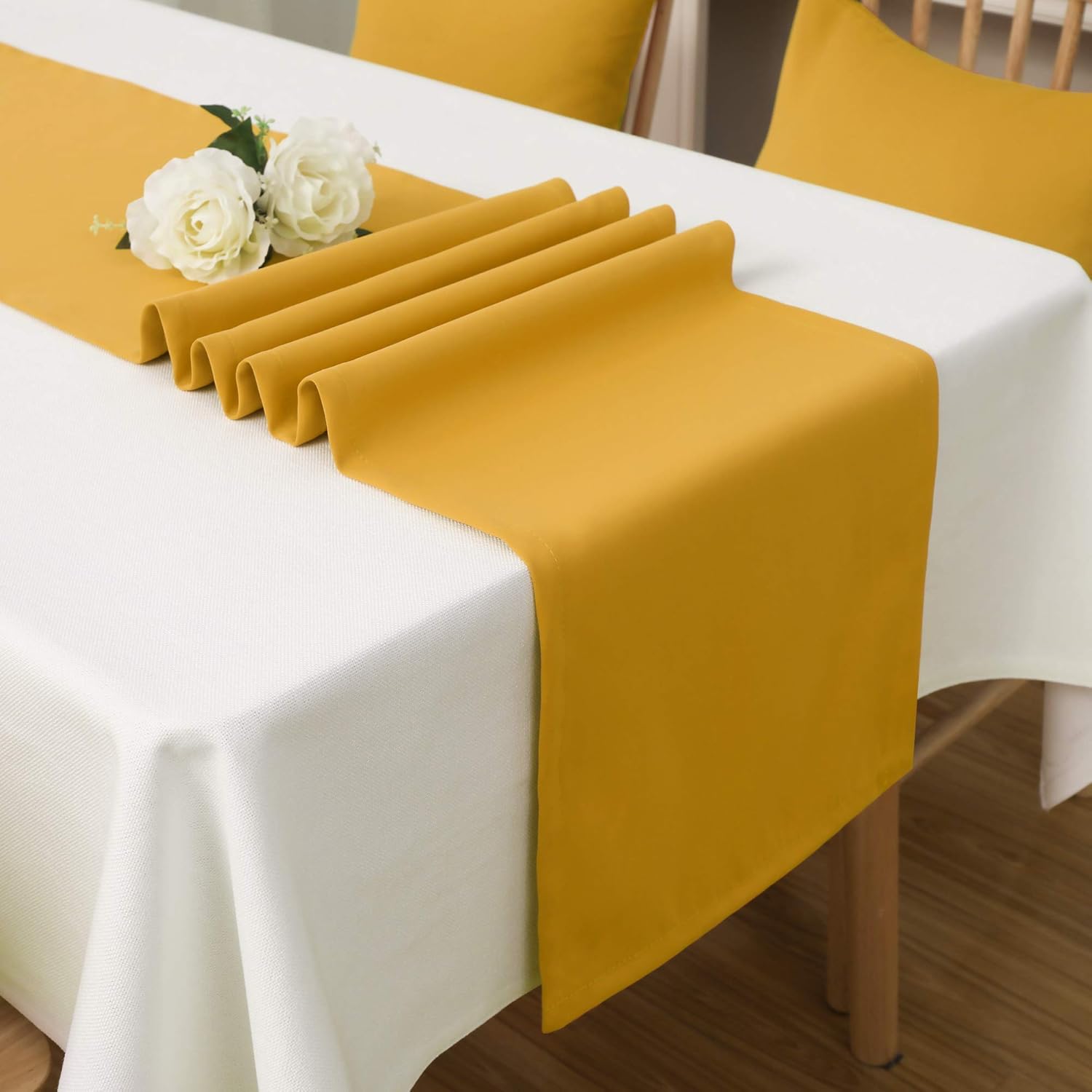 DUALIFE Table Runner Yellow 14 x 72 Inches Long Vivid Fall Yellow Table Runner for Wedding Family Dinner Outdoor Picnics Table Handmade Table Runners 14" x 72" 2 Pieces