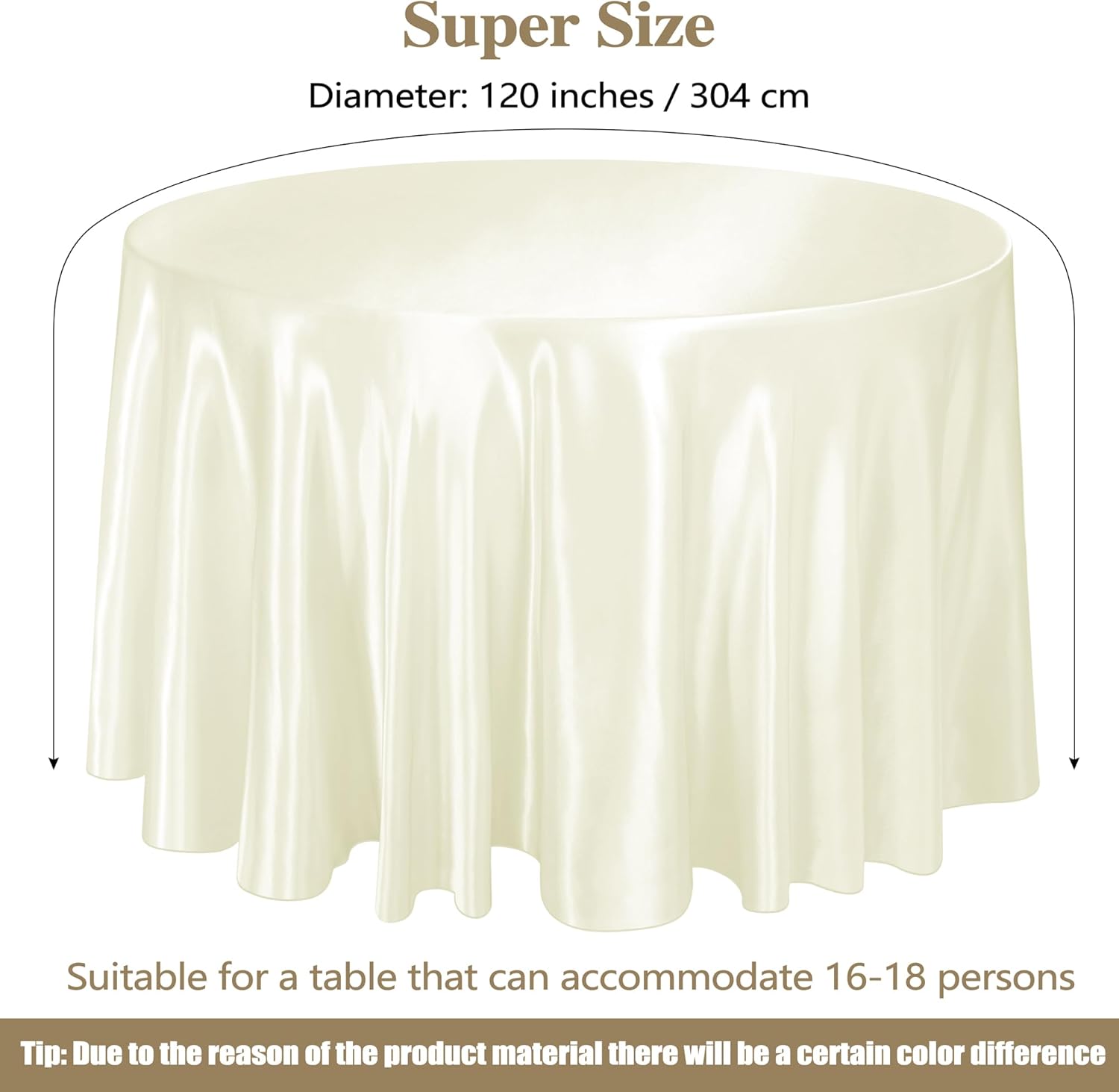 Ruisita 120 Inches Round Satin Tablecloths Ivory Overlay Round Satin Table Cover Bright Silk Smooth Fabric Tablecloth for Wedding Banquet Tables Decoration