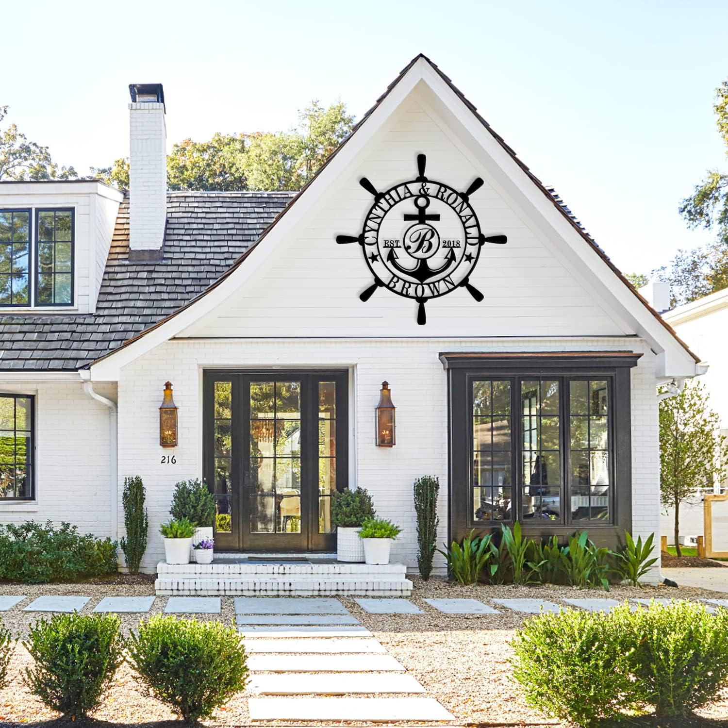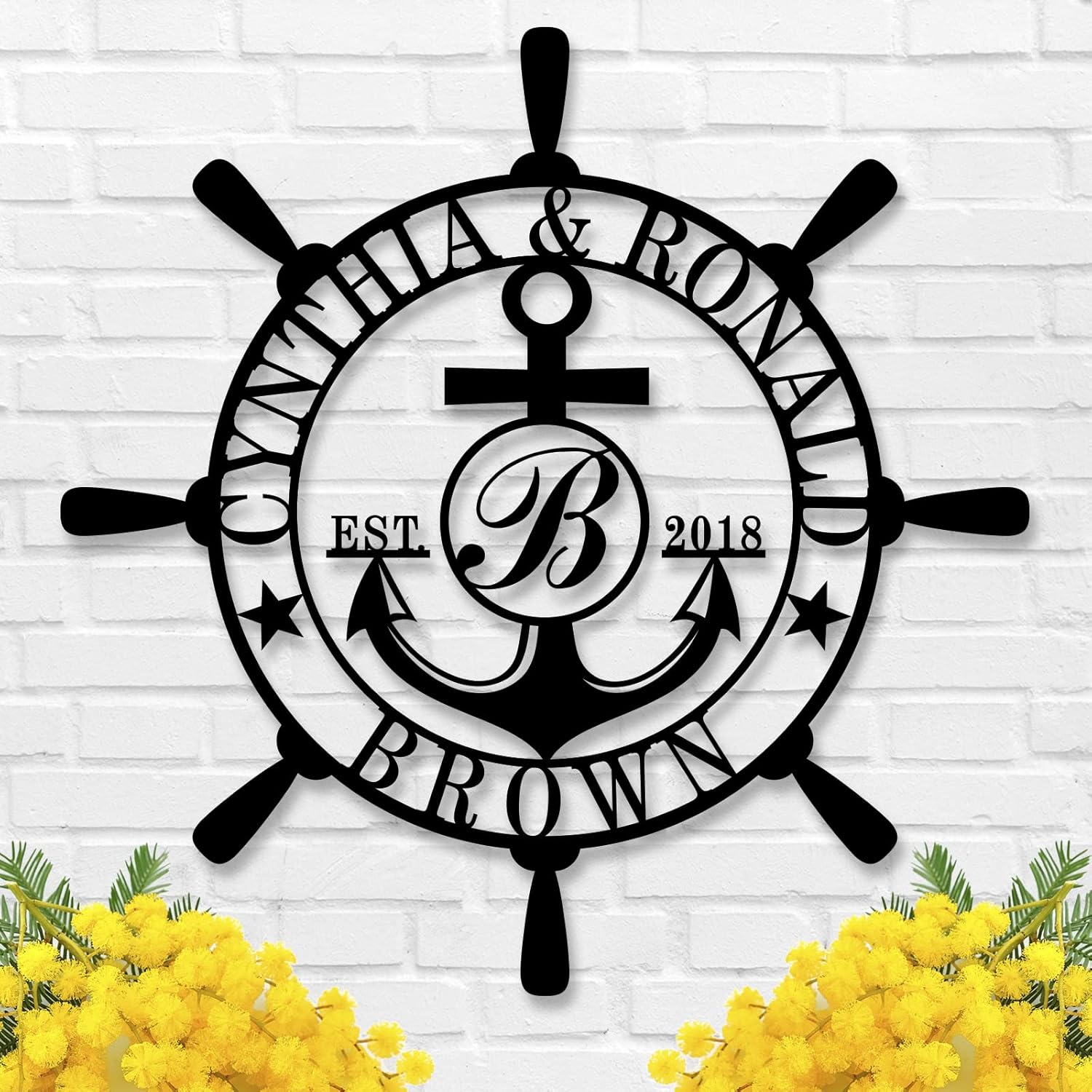 Customized Family Name Sign, Nautical Wall Decor, Anchor Compass Metal Sign, Initial Split Letter Monogram Sign, Last Name signs, Personalized Housewarming Gift