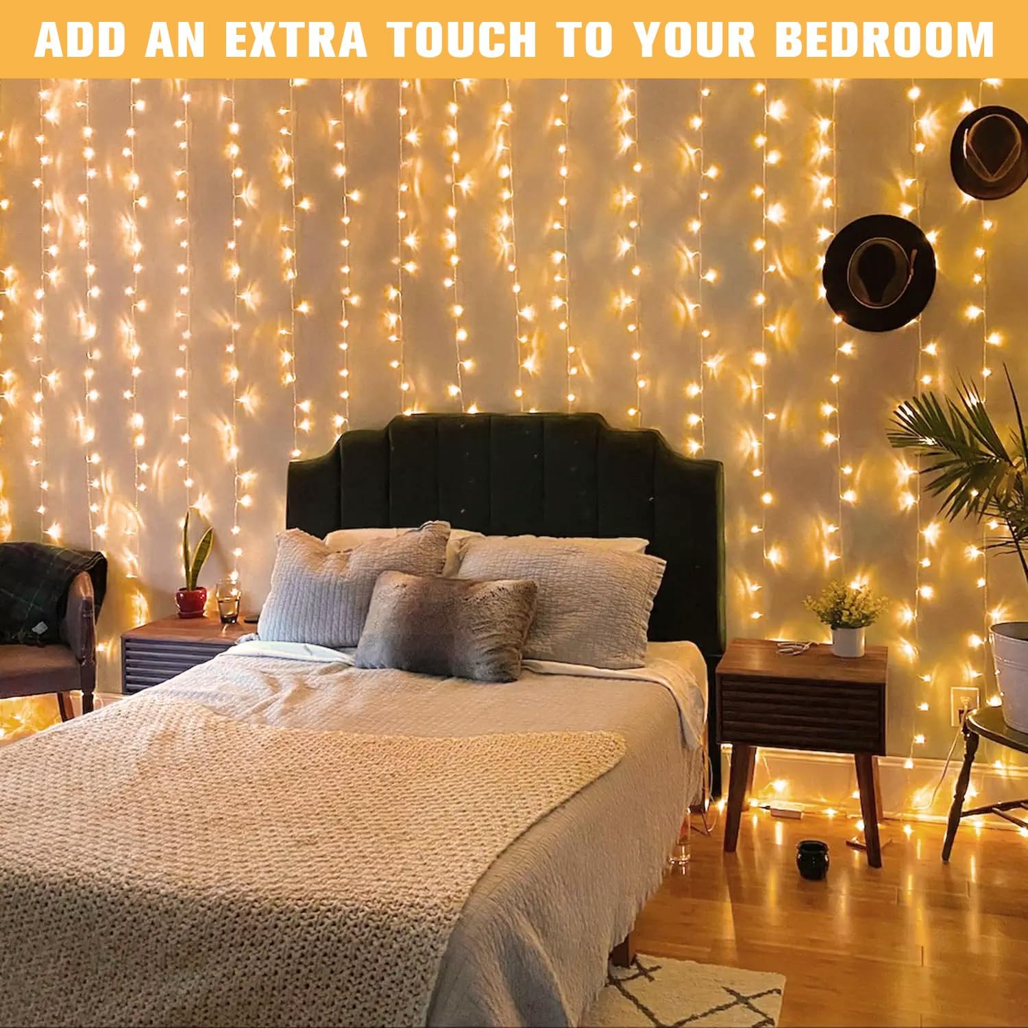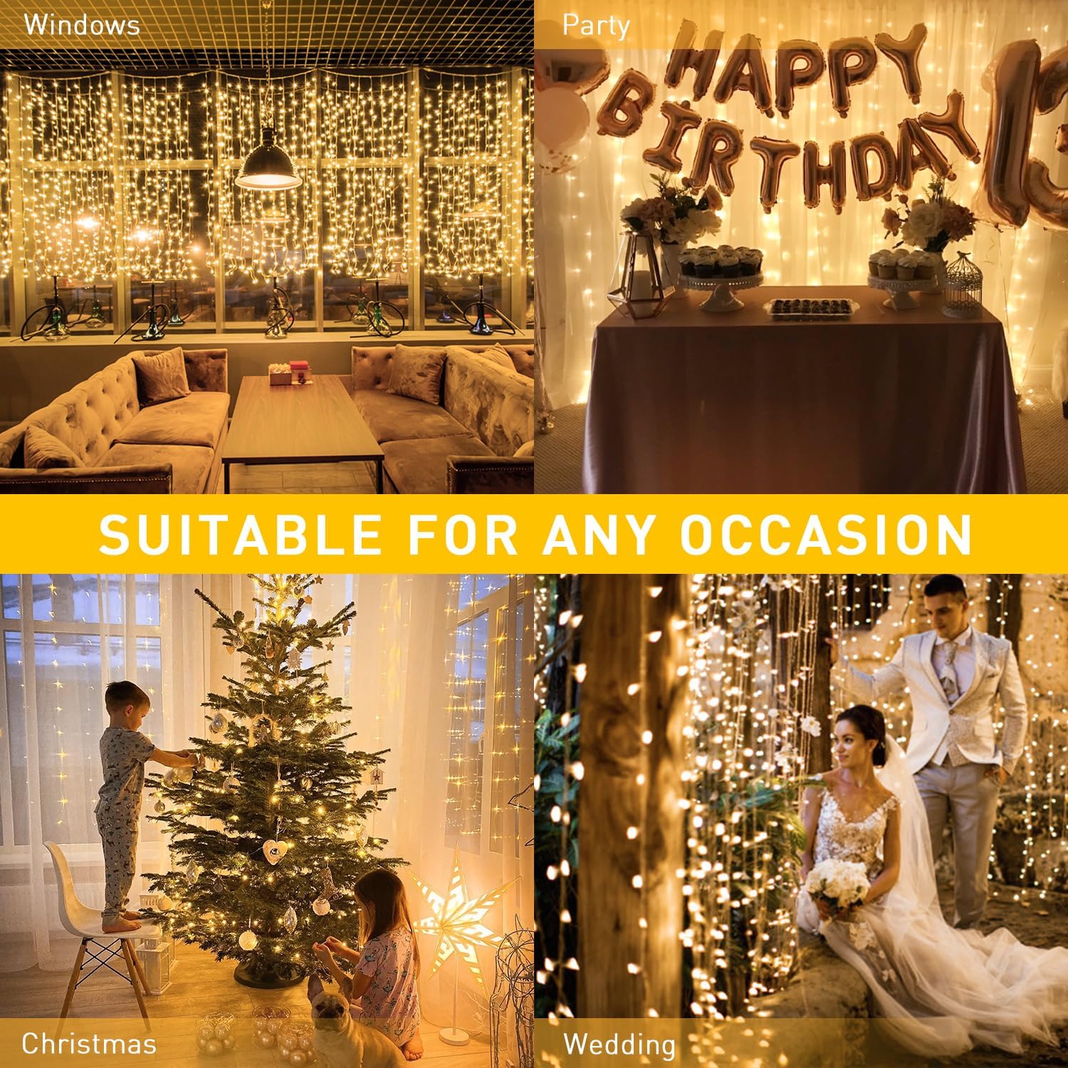 • ULTRA-LONG 600 LED CHRISTMAS CURTAIN LIGHTS: The Christmas curtain lights (non-connectable) come with 20 light strands, each containing 30 LEDs for a total of 600 LEDs. It gives off a warm soft glow, and really adds a nice touch of oomph to your home. The 19.6ft curtain string lights are 2 times the length of general ones, making them sufficient to cover most windows and walls, great for your room decor. NOTE: for stability of light brightness, multiple sets of these lights can NOT be connected