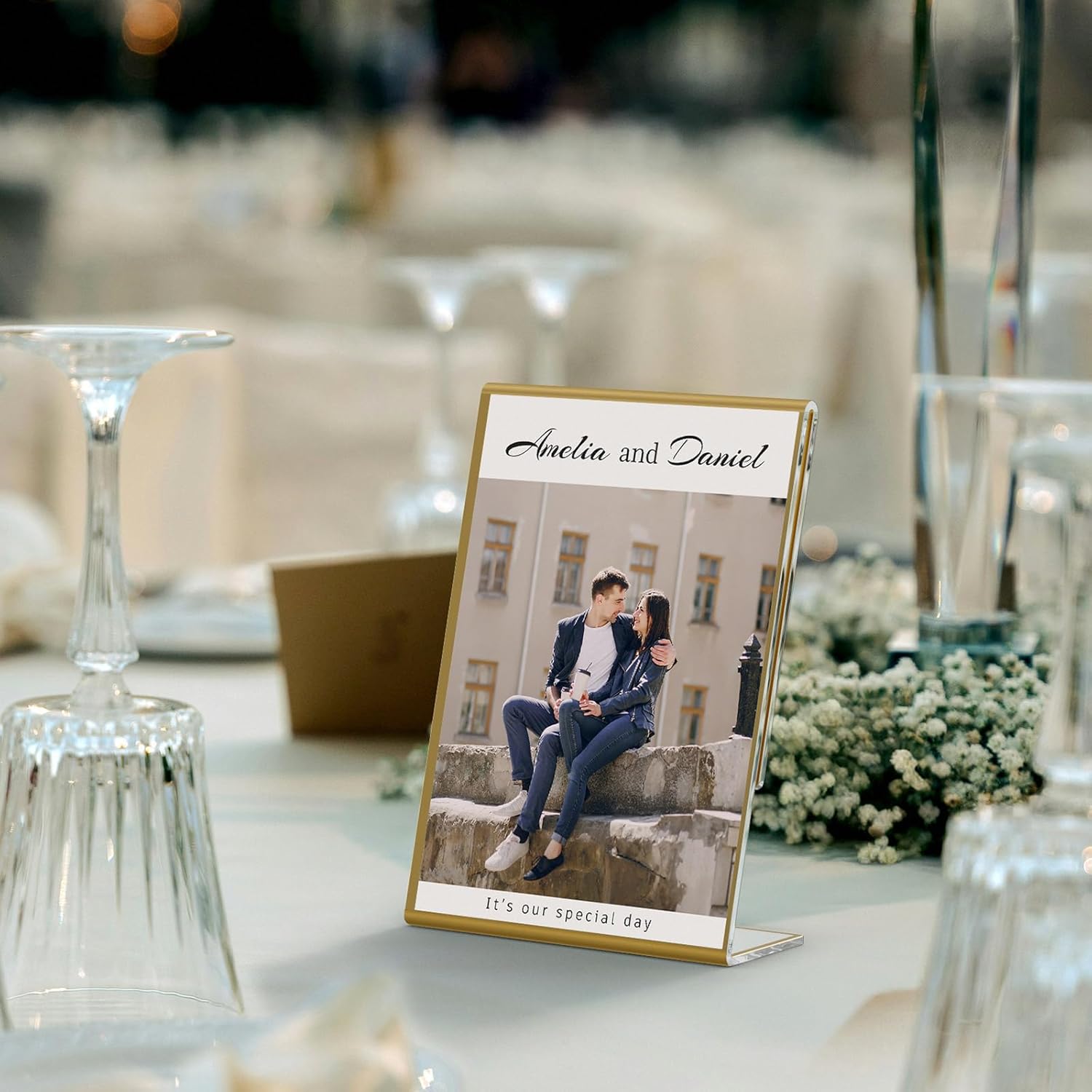 • Versatile for Any Occasion - Perfect for graduations party, weddings, baby showers, home decor, business events, and more, these gold frames adapt to any setting—easily showcase 5x7 photos, table numbers, menus, QR CODES, or flyers, maximizing versatility so they're always in use and never sitting unused, saving you money.