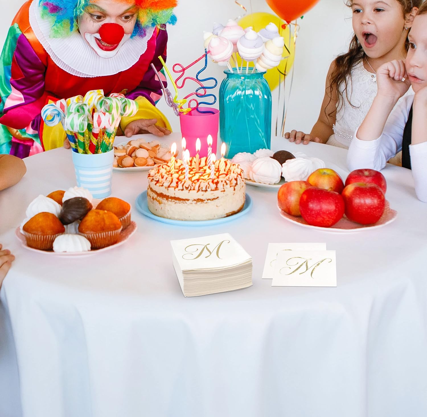 Gift Boutique 100 Gold Monogram Cocktail Napkins Letter M Disposable Paper Pack Elegant Metallic Golden Foil Hand Napkin for Powder Room Wedding Holiday Birthday Party Baby Shower Decorative Towels
