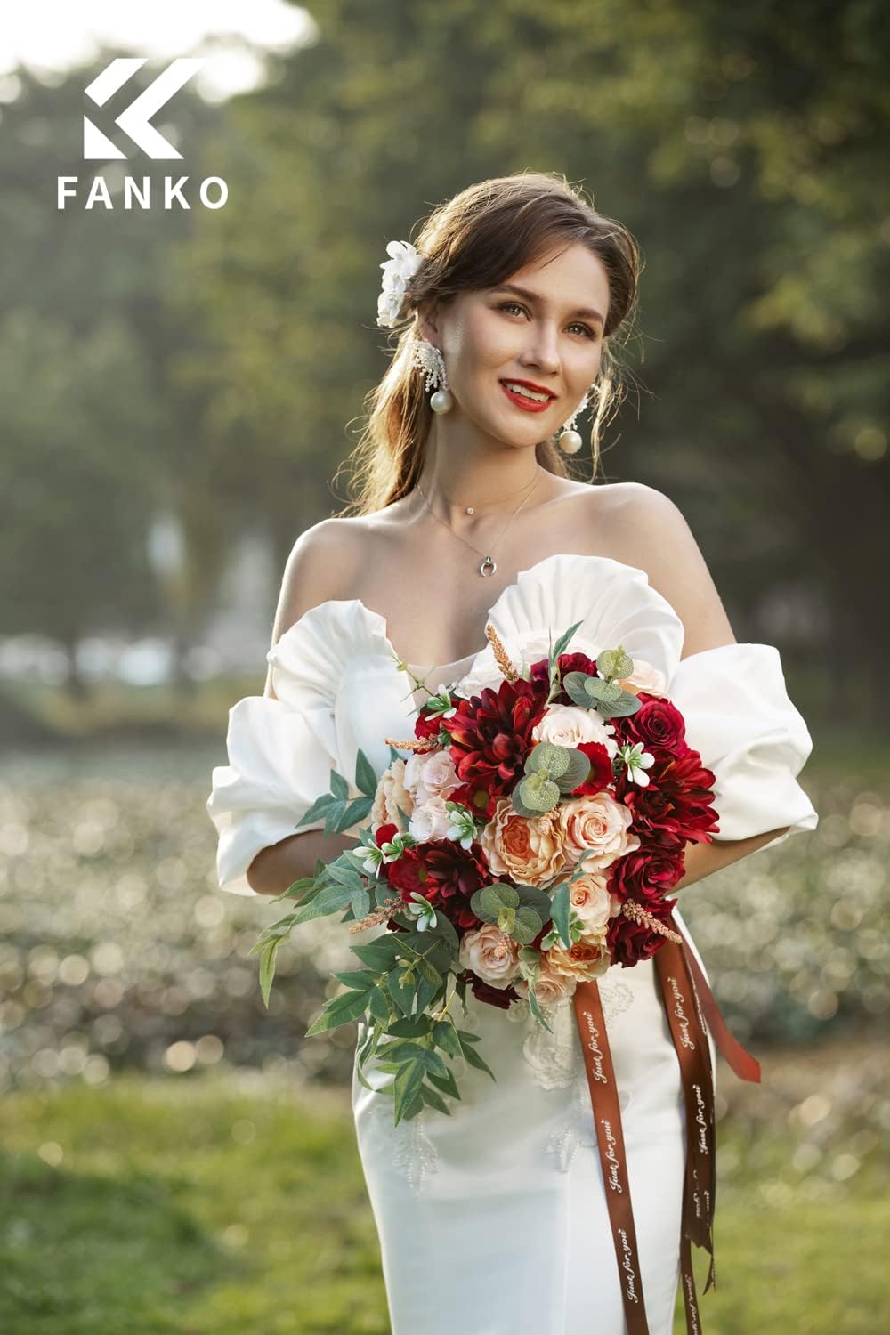 • 【27Pcs in Package】Our artificial flowers combo includes: Burgundy Semi-Cactus Dahlia x 3 (5"), Sunset Orange Waterlily Peony x 3 (3.5"), Burgundy Roses x 3 (3.5"), Cream Champagne High-Centered Roses x 3 (3.5"), Cream Vendela Roses x 3 (3.5"), Brick Red Flowers x 3 (2.5"), Plum Blossoms x 3 (2.5"), Mini Vanilla Flowers x 3, Eucalyptus Stems x 3, Nandina Plants x 3. [Notes: Ribbons are not included. Colors may vary slightly due to differences in monitor settings.]