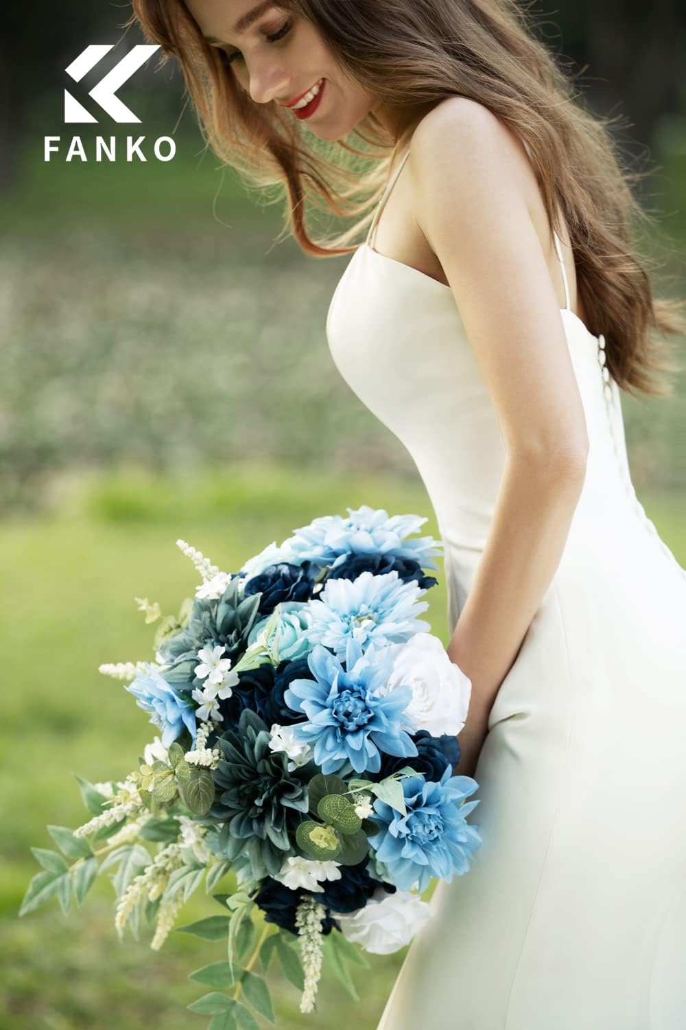 • 【27Pcs in Package】Our artificial flowers combo includes: Dusty Bule Semi-Cactus Dahlia x 1(5.5"), Dusty Sky Bule Semi-Cactus Dahlia x 2(4.5"), Sky Bule Semi-Cactus Dahlia x 2(4"), Navy Bule Rose x 7(3.5"), Light Bule Rose x 3(3.5"), White Rose x 2(3.5"), Little Delphinium x 9(1.25"), Wheat Ears Flowers x 3, Eucalyptus Stems x 2, Nandina Plants x 2. [Notes: Ribbons are not included. Colors may vary slightly due to differences in monitor settings.]