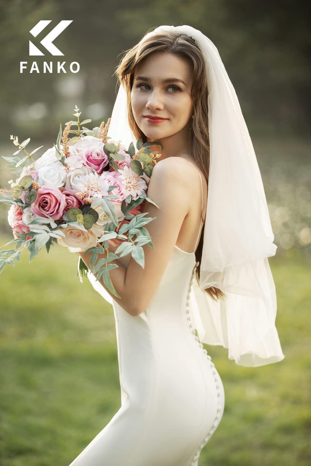 FANKO Rose Artificial Flowers Combo for DIY, Fake Pink Rose Artificial Silk Flowers with Greenery, Real Looking Artificial Faux Flowers for Wedding, Table Decoration, Centerpieces, Party, Home Décor