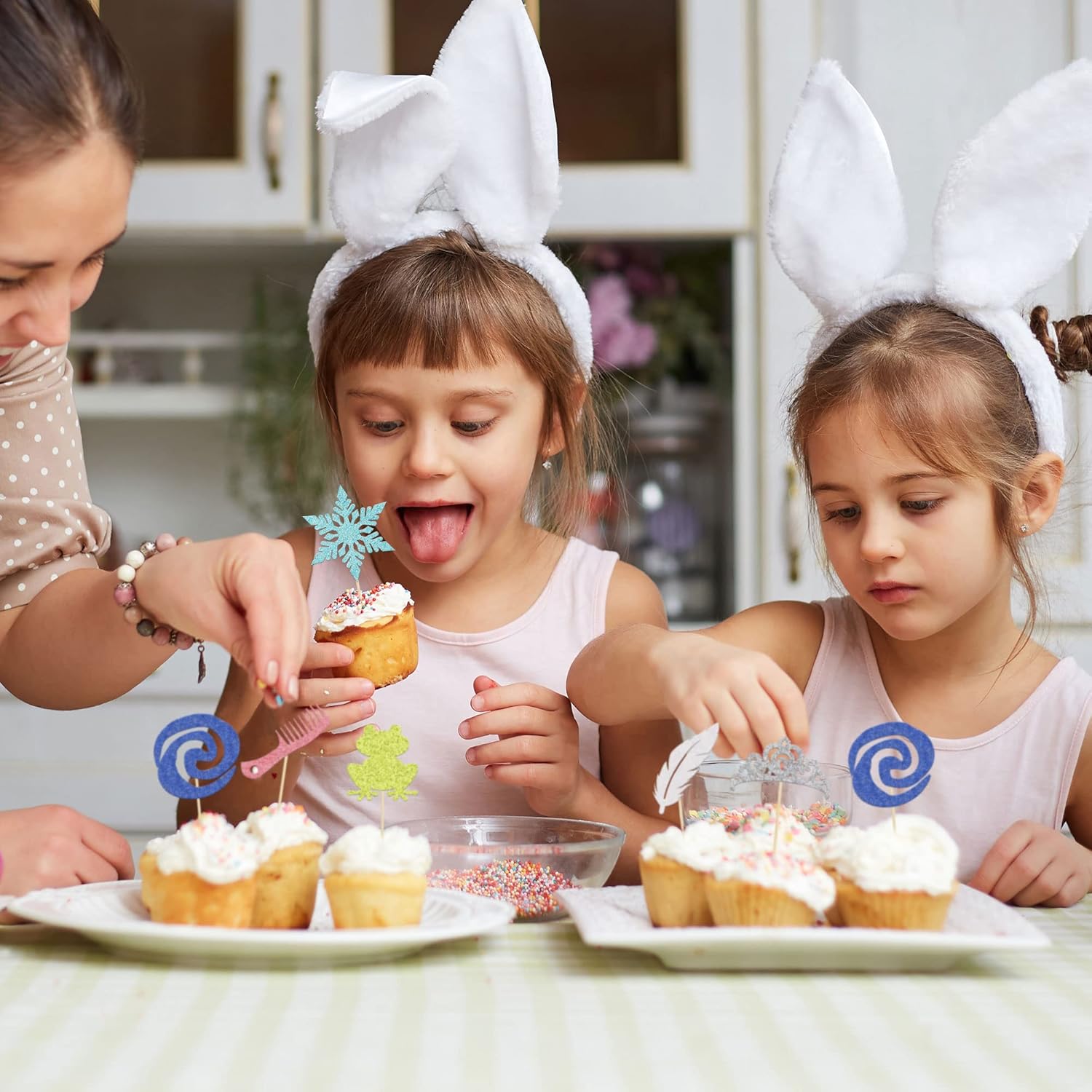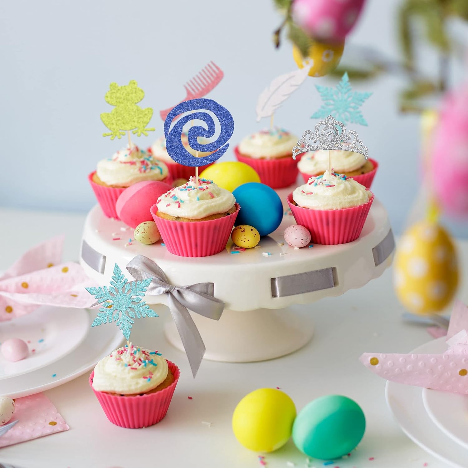 Gyufise 24Pcs Princess Symbol Cupcake Toppers Crown Frog Feather Comb Snowflake Cupcake Pick Decorations for Princess Theme Baby Shower Kids Birthday Party Supplies