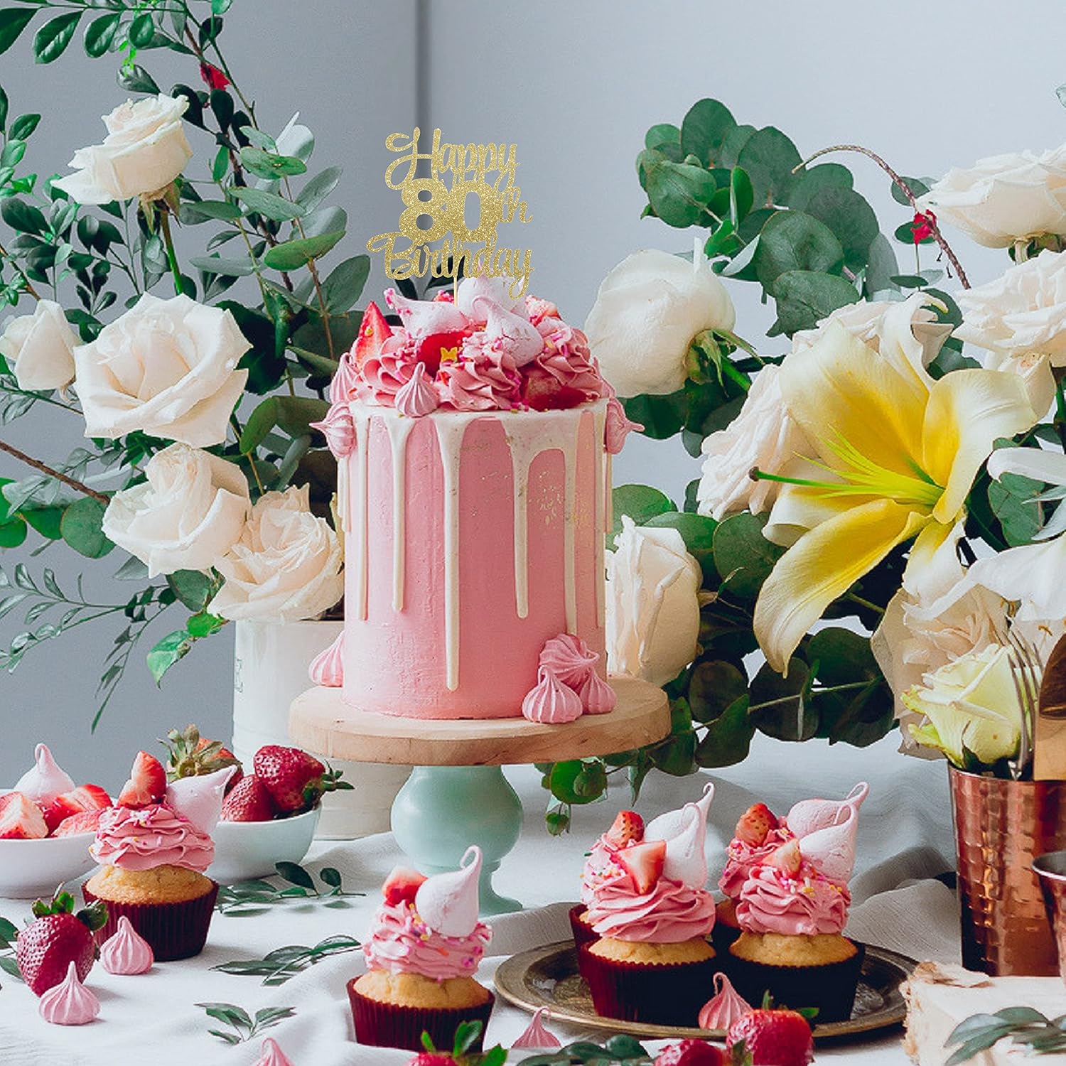Happy 80th Birthday Cake Topper - 80th Birthday Decorations,80th Topper,80 Cake Party Decorations,80 Anniversary Decor