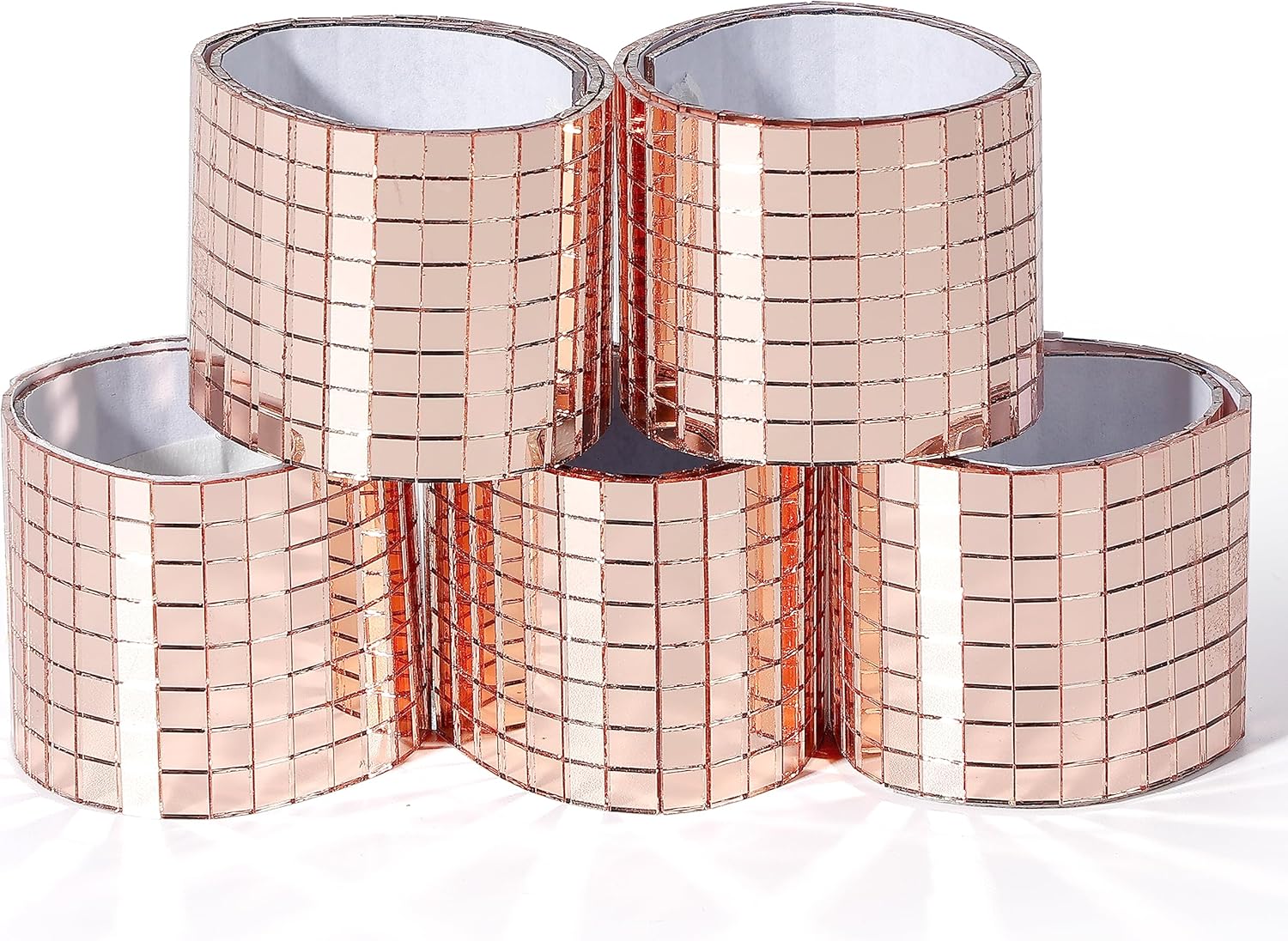 PP OPOUNT 2360 Pieces Self-Adhesive Mosaic Tiles, 5 x 5 mm Disco Tiles, Real Glass Mirror Mosaic for DIY Disco Balls, Indoor Decoration, Vases, Cups, Photo Frames (Rose-Gold)