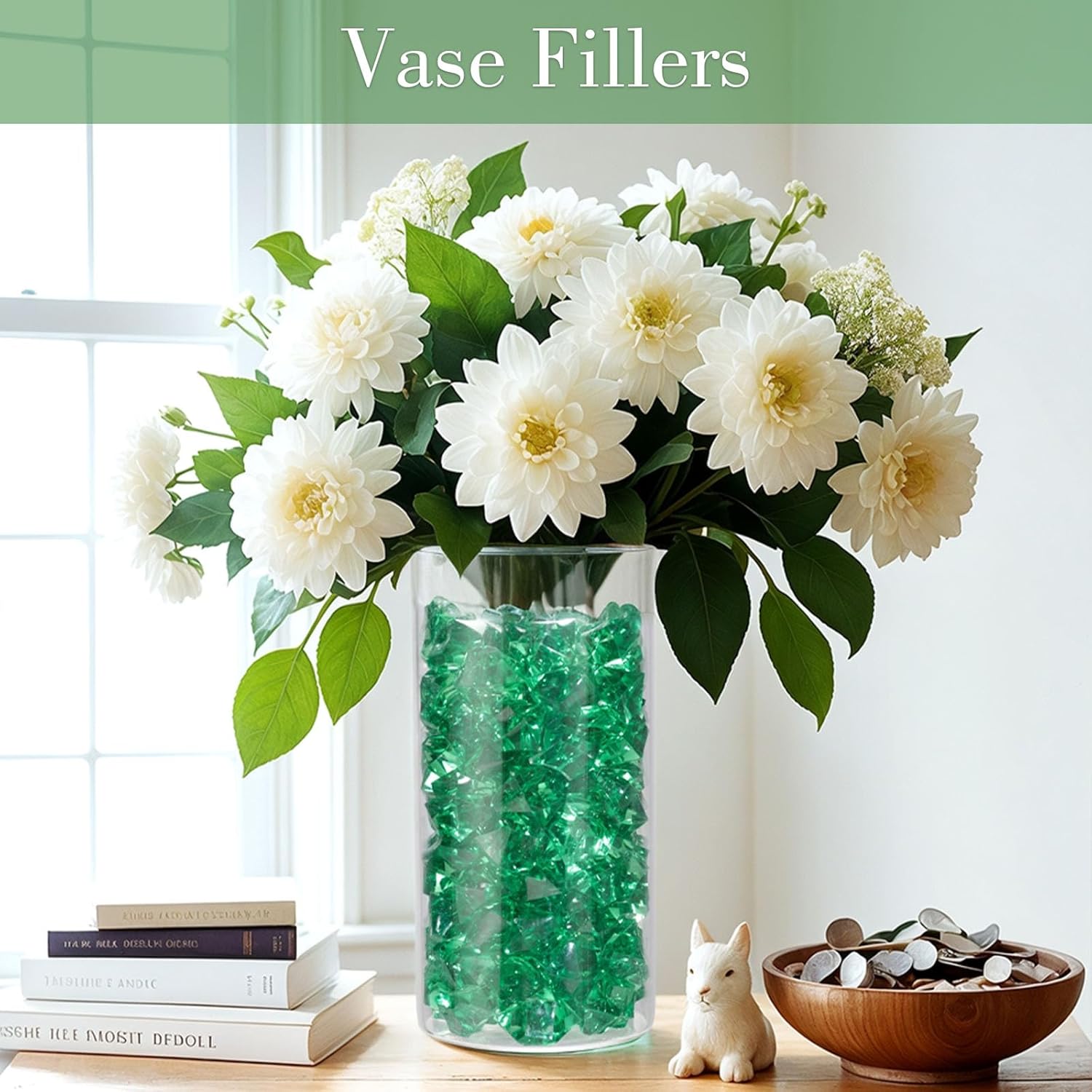 DomeStar 150PCS Fake Ice, Vase Fillers Green Acrylic Fake Diamonds Plastic Gems for Fish Tank Table Scatter Decoration