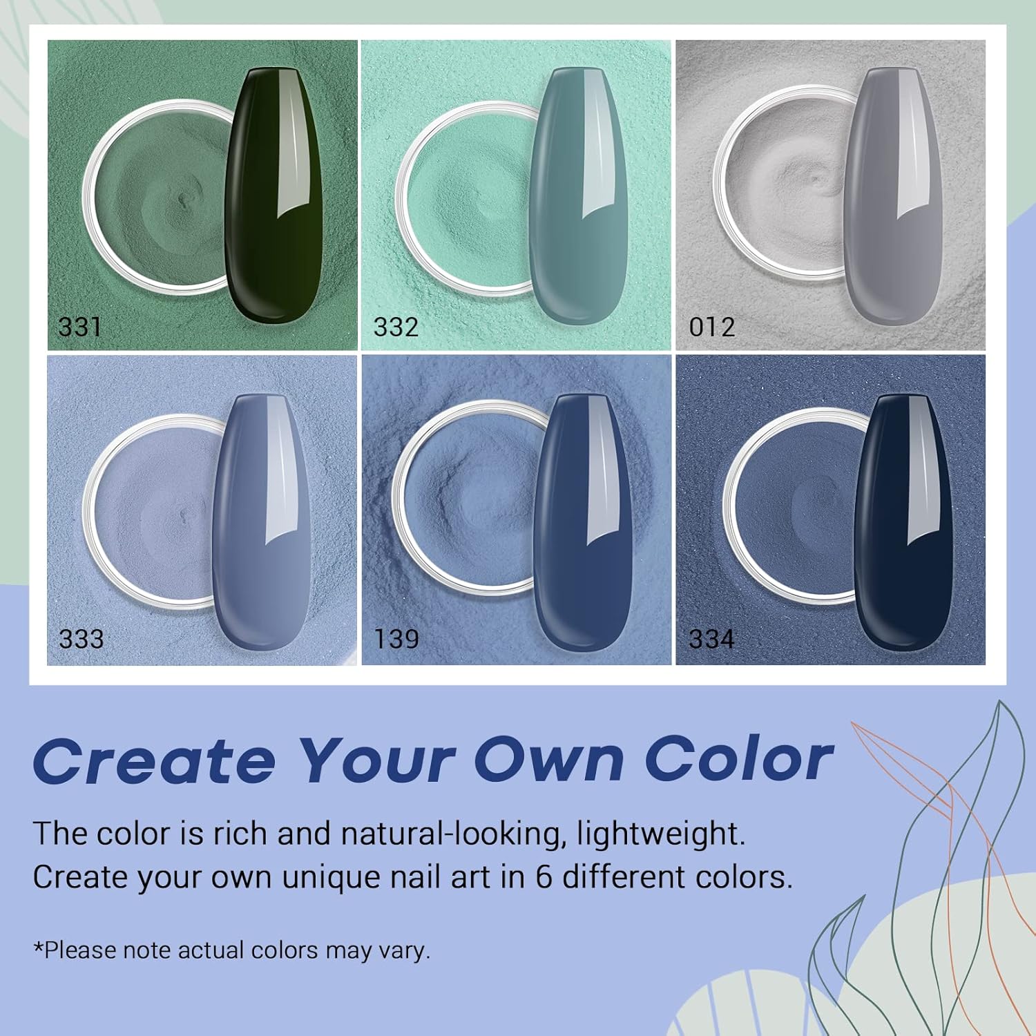 • Dusty Green Blue Dip Powder Set: With this premium dip powder set covering 6 different tones(slate&indigo&cornflower blue, turquoise&army green, gray, 10g/box), your nails would look brilliant shine finish, lightweight, and more attractive. The set will meet your needs on all occasions(daily routine life, party, travel, etc) all year round