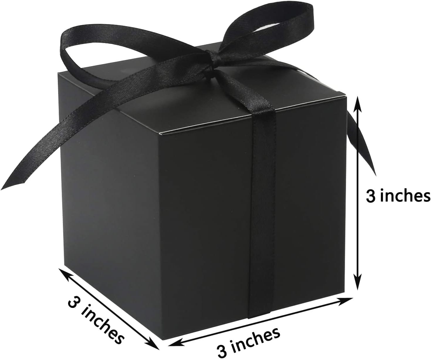 COTOPHER 25pcs Wedding Favor Boxes, Paper Gift Boxes 3x3x3 Inches Small Gift Boxes with Ribbons for Gifts, Crafting, Cupcake, Candy, Bridesmaid Proposal Boxes