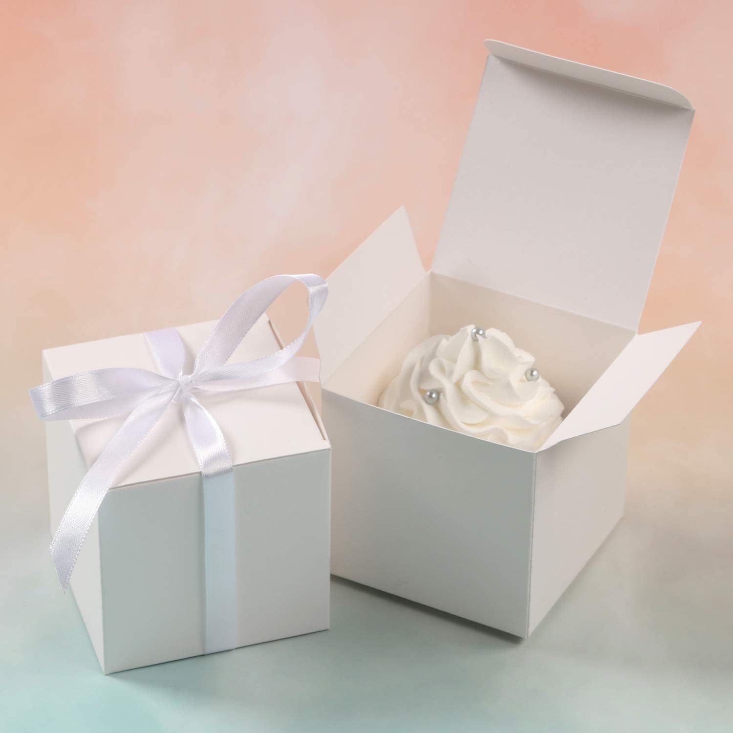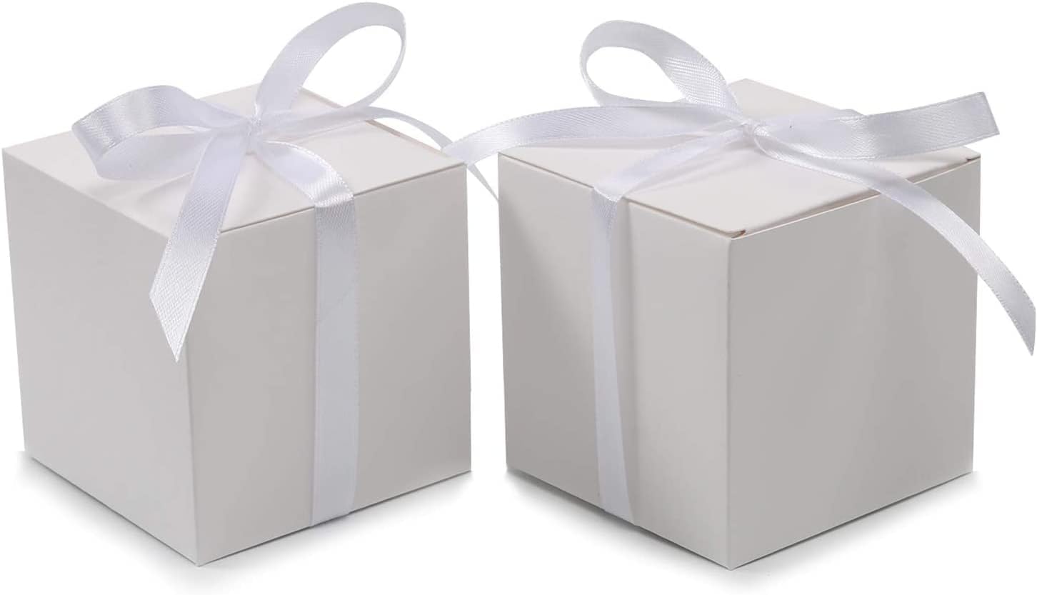 COTOPHER 25pcs Wedding Favor Boxes, Paper Gift Boxes 3x3x3 Inches Small Gift Boxes with Ribbons for Gifts, Crafting, Cupcake, Candy, Bridesmaid Proposal