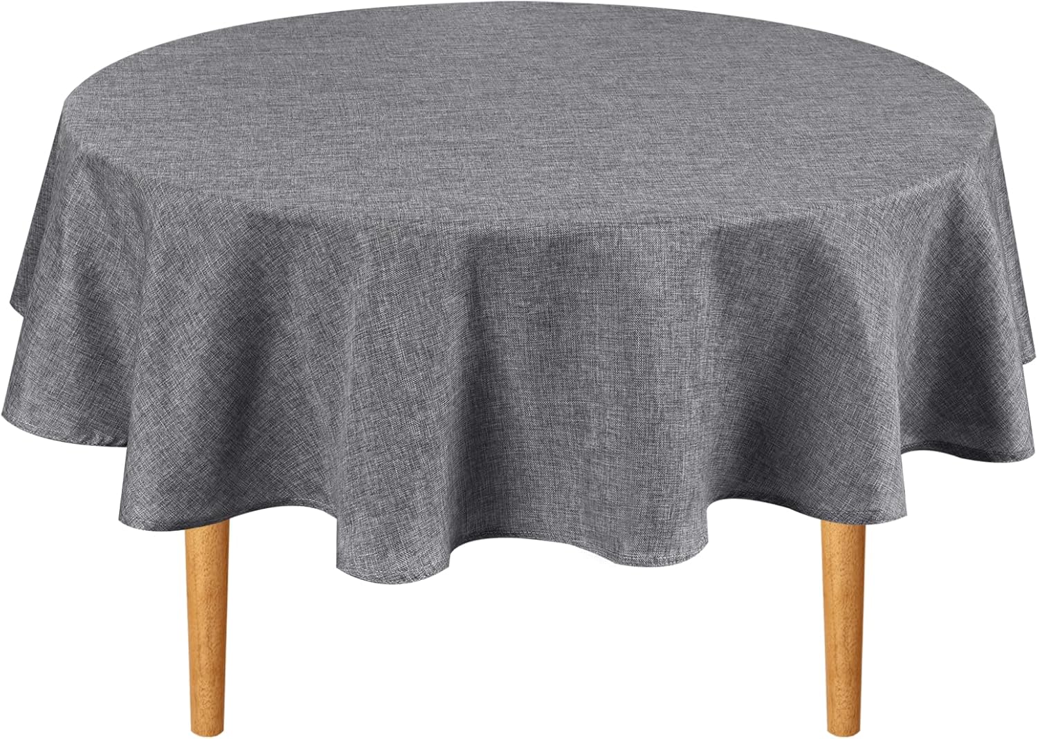 Hiasan Round Tablecloth 60 Inch - Wrinkle and Stain Resistant Washable Polyester Fabric Table Cloth for Patio Dining Room Kitchen Party, Grey