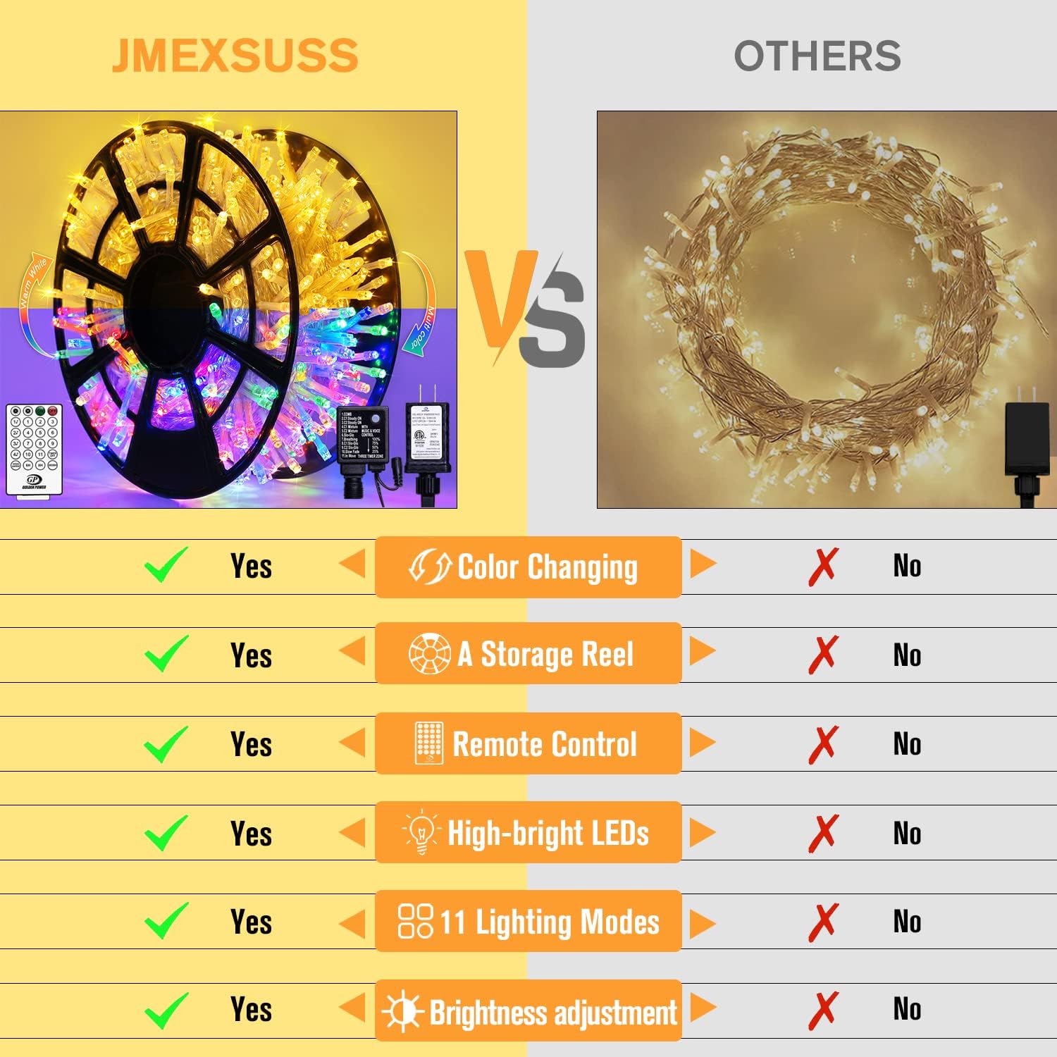 JMEXSUSS 500 LED Color Changing Christmas Lights, 163FT Warm White & Multicolor String With Remote, Plug-in for Tree House Indoor Outdoor Xmas Decor