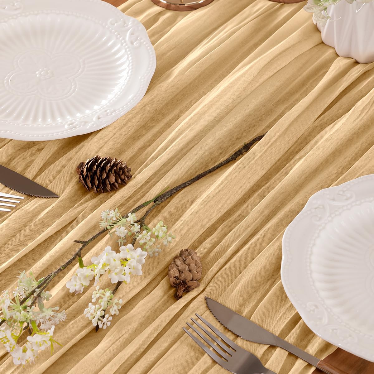 • 【Timeless Elegance】The delicate, airy wrinkles of cheesecloth fabric giving it a vintage, artisanal feel that brings warmth and character to your space. This timeless elegance ensures your party decorations and everyday table decor remain stylish season after season.