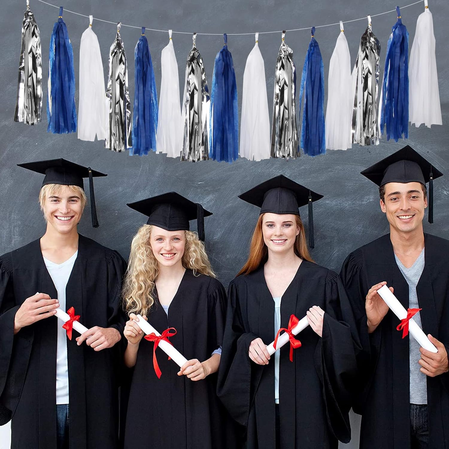 Navy-Blue White-Silver Tassel Garland Streamers - 15pcs Party Decorations Tissue Paper Tassels Banner,Graduation 2025 Wedding Baby Bridal Shower Hanging Decoration Boy Birthday Backdrop Decor Panduola