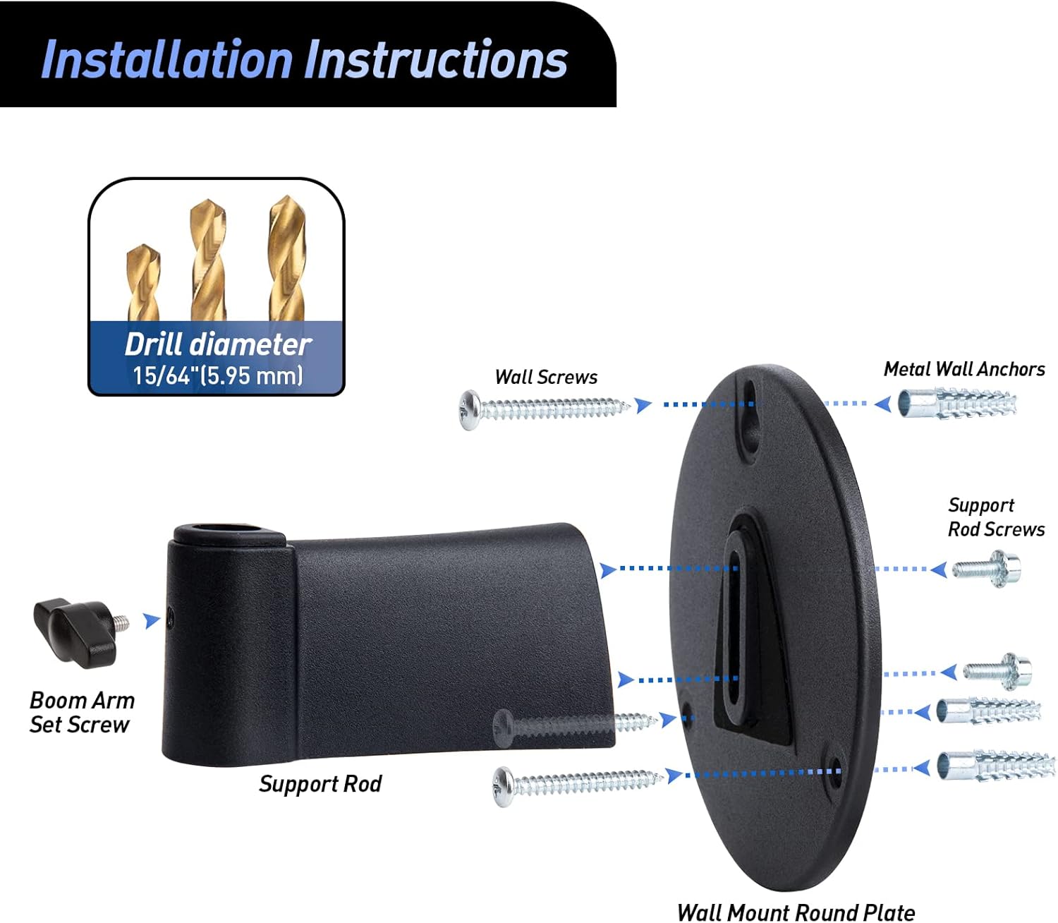 • Metal Wall Anchors - Stronger than normal plastic wall anchors, prevents the product from falling off the wall during use and protects your Microphone and Mic Boom Arm.
