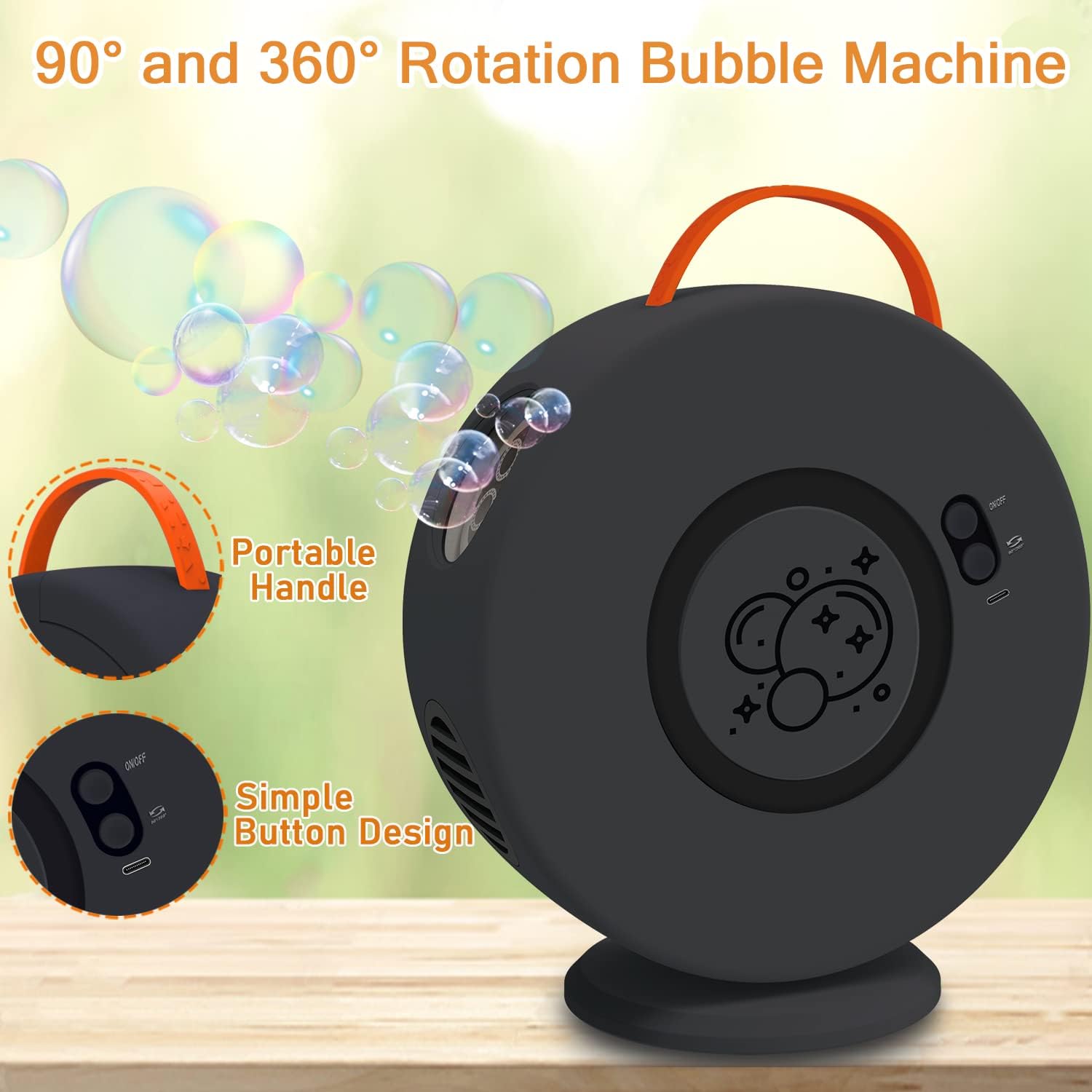 Bubble Machine Automatic Bubble Blower for Kids Toddlers Rechargeable Battery Portable Bubble Maker Electric Bubble Machine Auto Rotating 90°/360° Outdoor Toy for Birthday Party Wedding