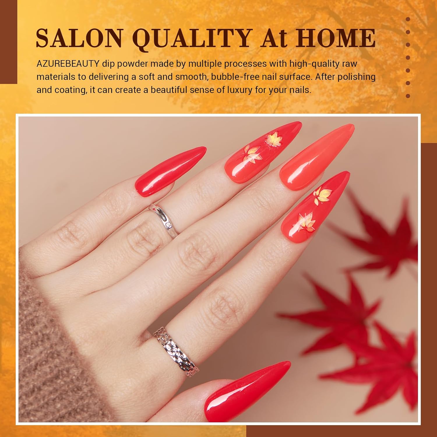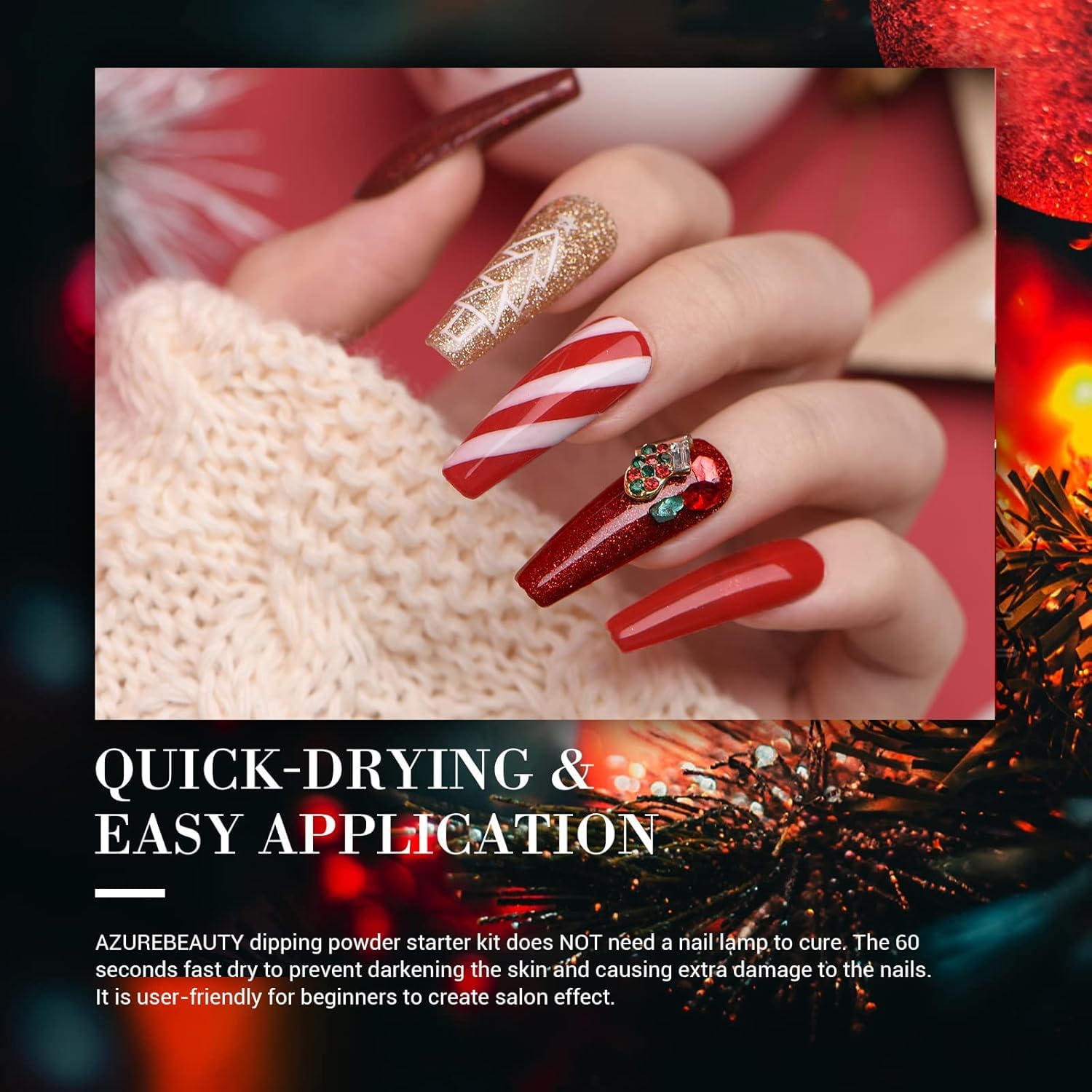 • Healthy & Nail-Friendly: AZUREBEAUTY dipping powder kit made with healthy ingredients, proven unique formula complex of rich calcium and vitamins, to gives nails long-lasting strength, which would not damage your nail bed, and is available for air-dry