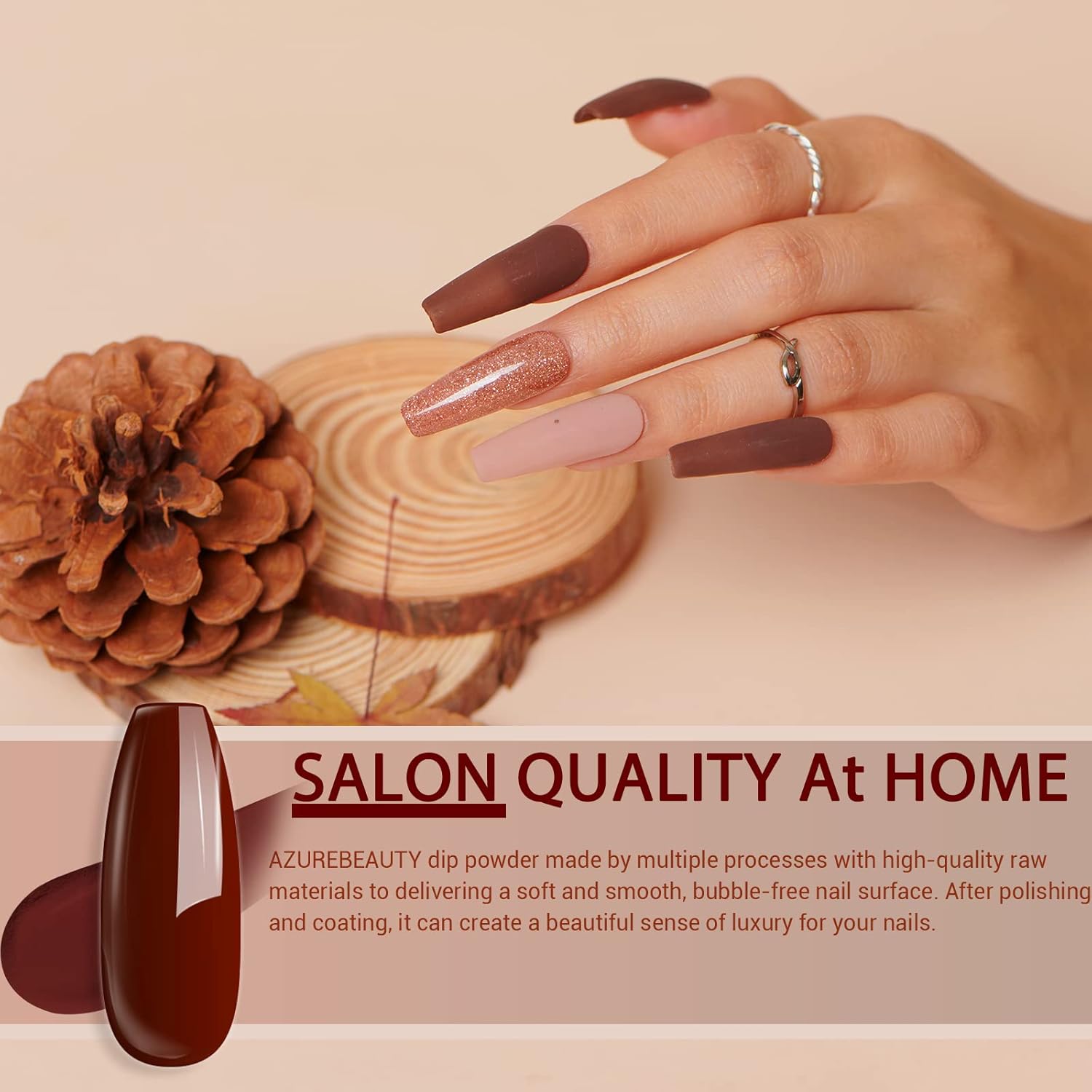 • 💕【Ideal Gifts & Trusted Brand】New packaging for AZUREBEAUTY nail dip powder kit with more advanced and simple colors, Ideal gift for your sister, mom, and friends. Tips:1. Avoid direct contact with skin, remove immediately if you feel any discomfort. 2. The effection of dip powder will be showing differently in different people, 2~3 base coat while using will be the best. 3.If you have any problems, contact us directly, we promise to offer a satisfactory service.