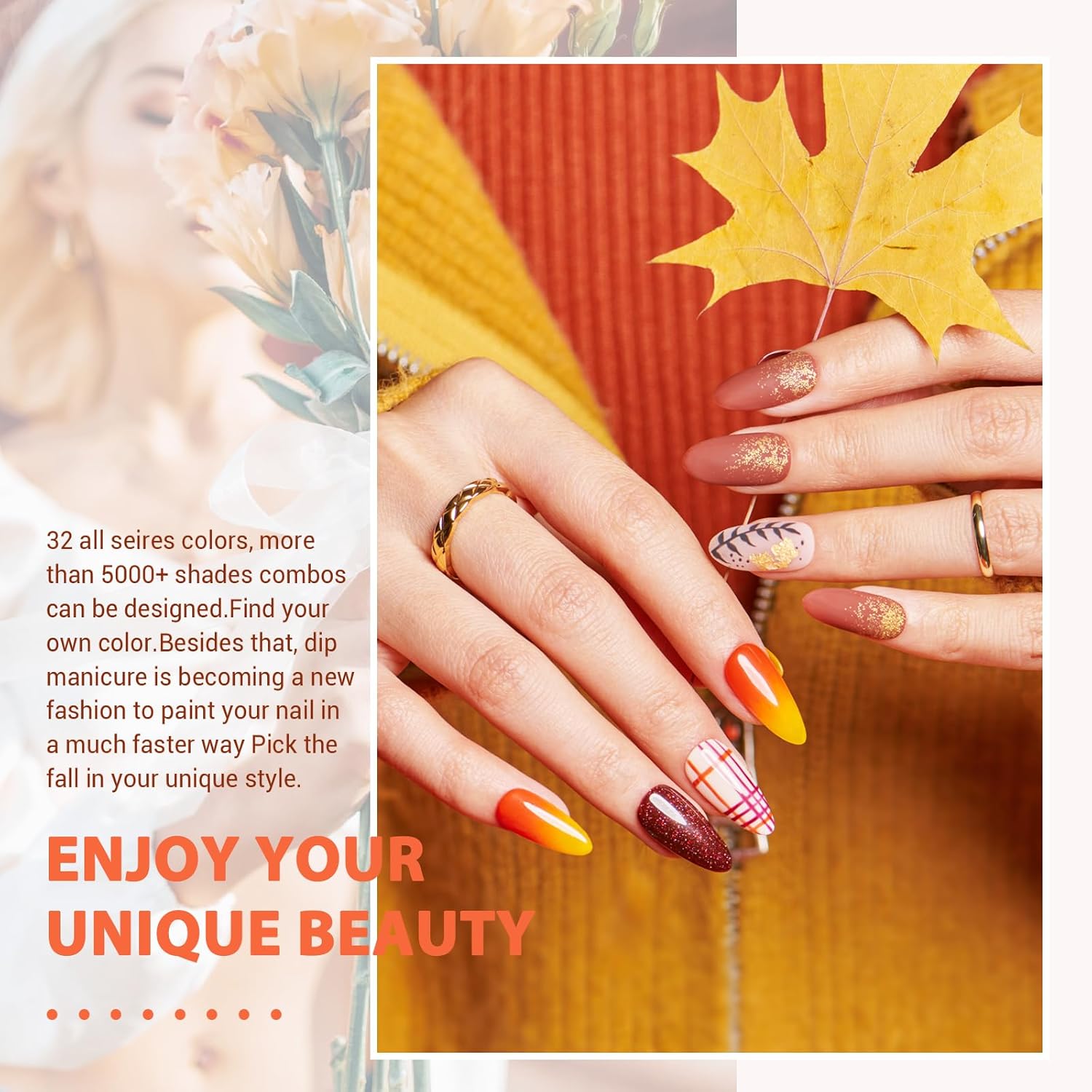 • ⏱【Long Lasting Bright Color】This shatter-resistant, crack-resistant dip powder spreads easily and lasts over 21+ days with daily use! Unparalleled gloss and vividness, no yellowing, and superb adhesion. 32 most fashionable style colors, full but natural, light, breathable, waterproof, and more than 25,000+ shade combinations can be designed. With premium dip powder from AZUREBEAUTY, your nail would look brilliant shine finish