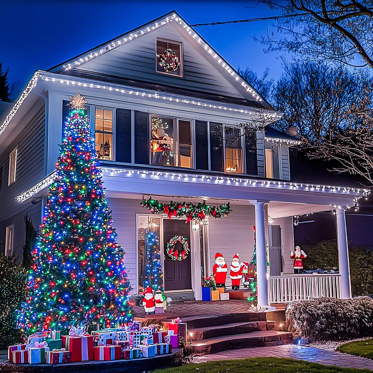 JMEXSUSS 600 LED Color Changing String Lights Plug in, 168FT White & Multicolor Christmas Lights with Remote, Christmas String Lights Outdoor Waterproof Clear Wire for Tree Xmas Decor