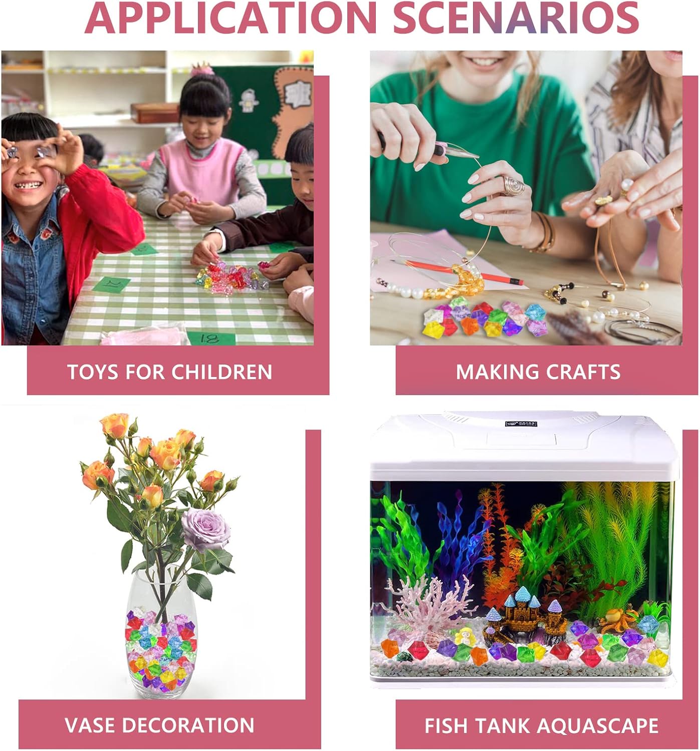 • Fine workmanship: Every piece of our Acrylic crystal gems are well polished and have no rough edges. These ice cubes are beautiful in shape and color. They are very bright under the light or sunshine, which can make your decoration distinctive and add brilliance to your life.