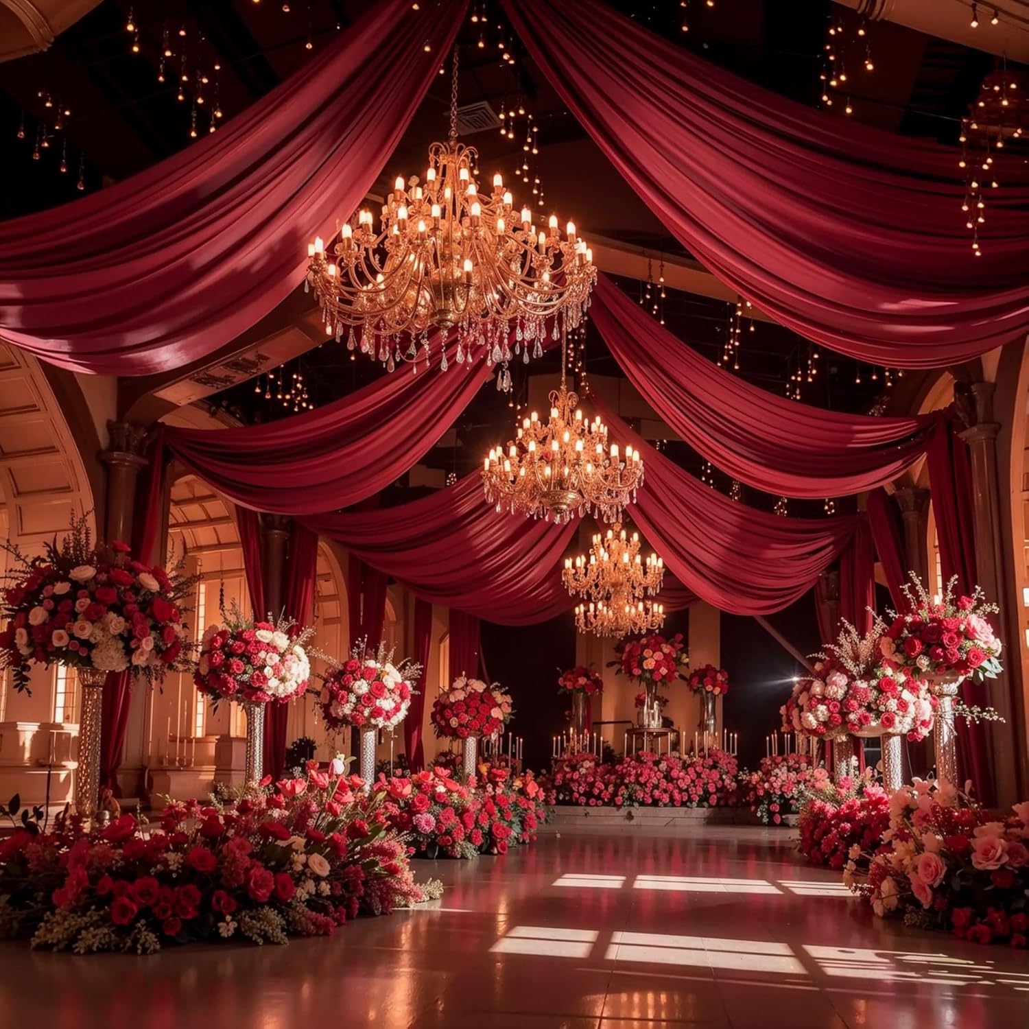 • BURGUNDY WEDDING DECOR APPLICATION: Semi-sheer draping fabric is versatile to any theme of ceremony party. Perfect for wedding stage, party stage, wedding reception, bridal shower, birthday, photo backdrop, home events, outdoor events, Valentine's Day, Thanksgiving Day, Christmas, New Year and more.