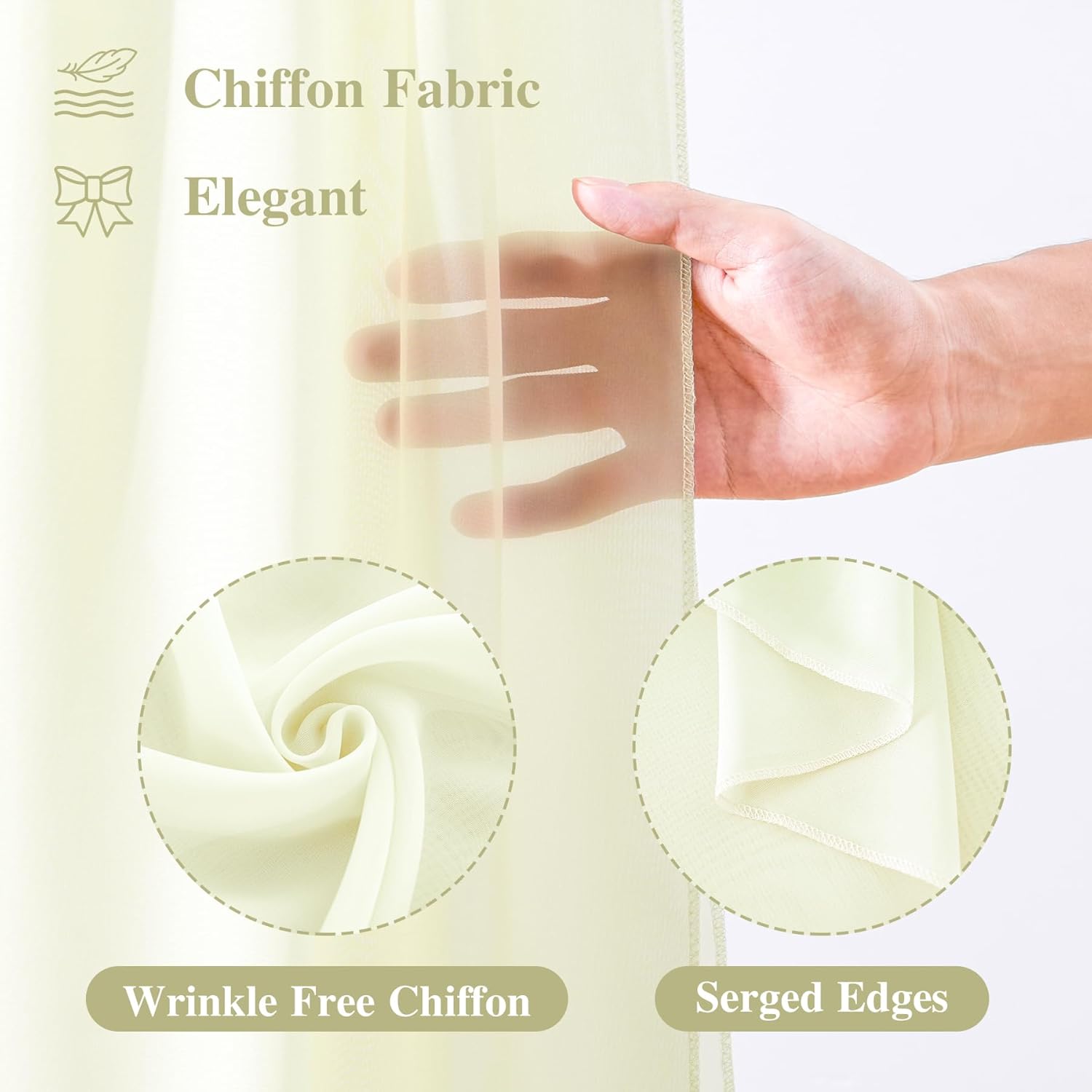 • What You Get: Including 1 panel ivory chiffon wedding arch drapes, each panel is 28" wide by 6 Yards (216 inches) long. Voile sheer chiffon draping fabric are good choice to decorate your wedding arch arbor.