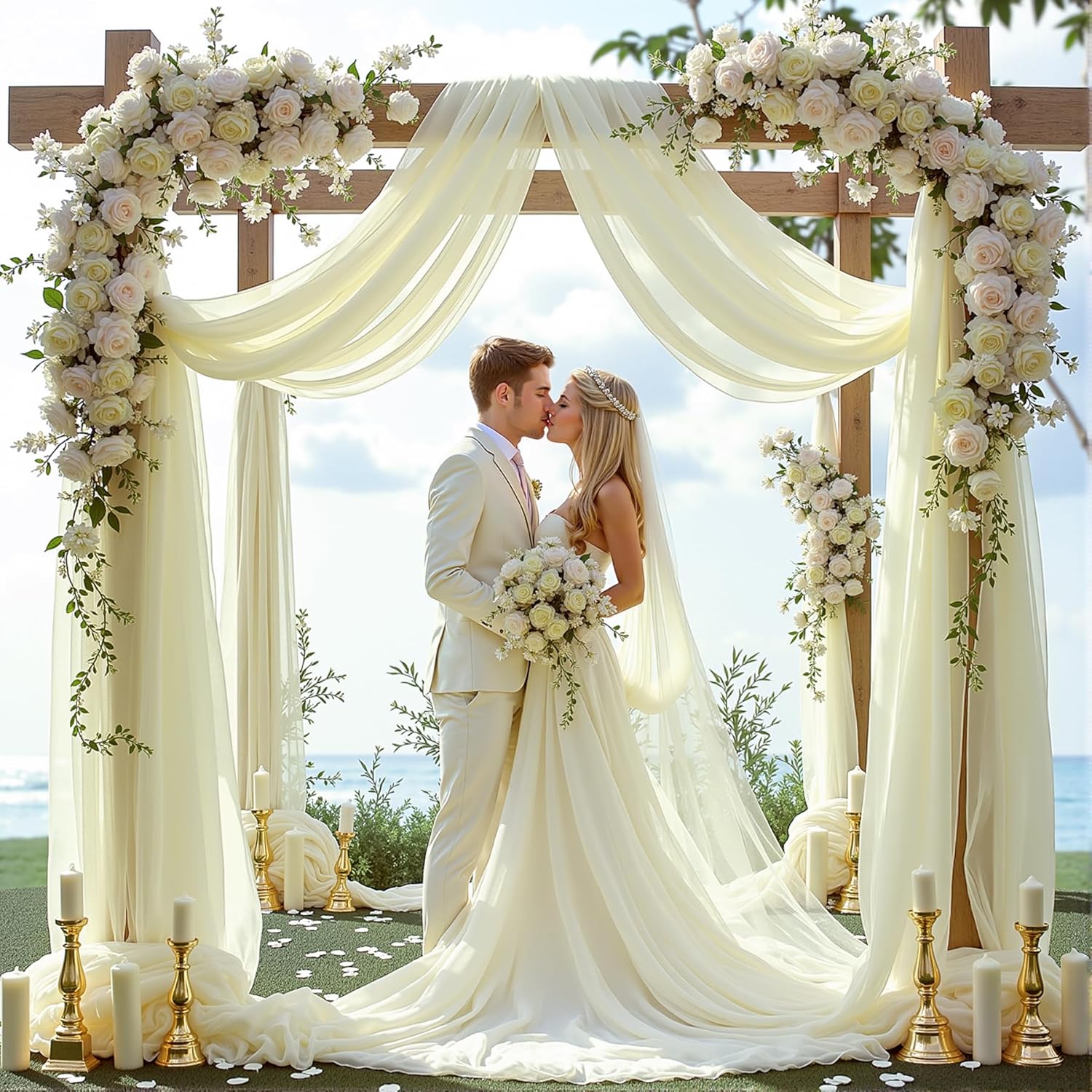 PARTISKY Wedding Arch Draping Fabric, Ivory Sheer Backdrop Curtain Chiffon Fabric Drapery for Ceremony Reception Party Ceiling Backdrop (Ivory Drapes Curtain, (1 Panel) 6 Yards/18ft)